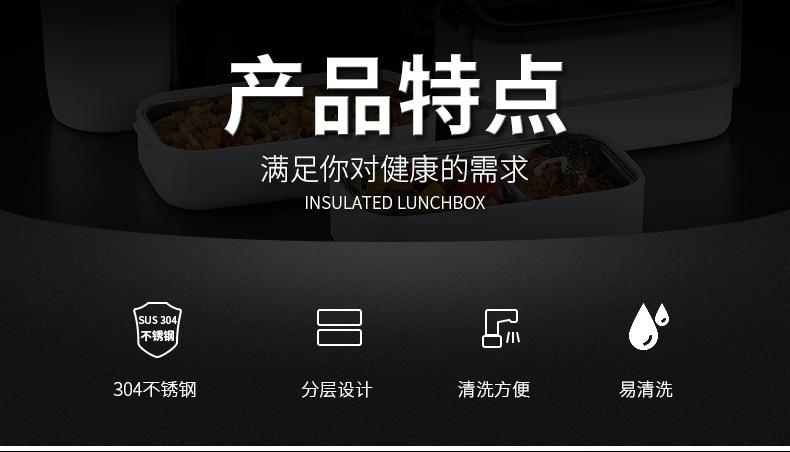 Fiambrera portátil de acero inoxidable 304 con aislamiento de doble capa para estudiantes de primaria, sellada para el trabajo