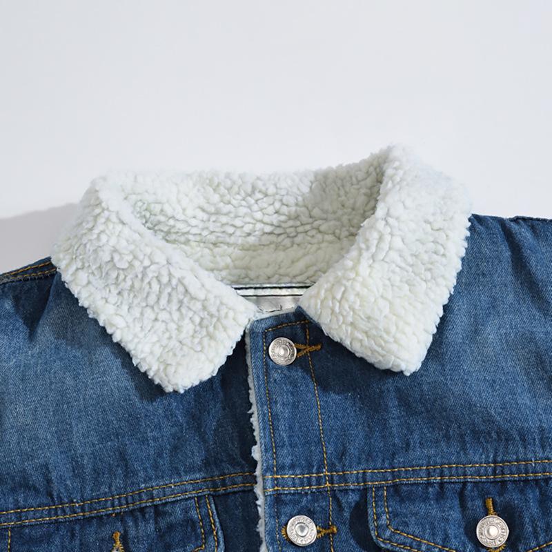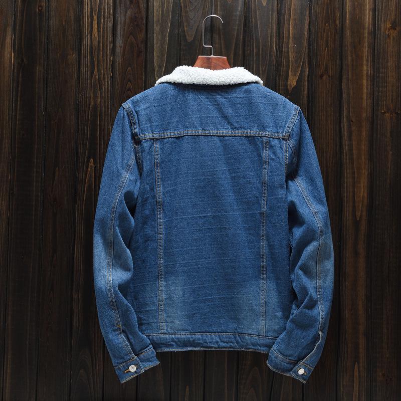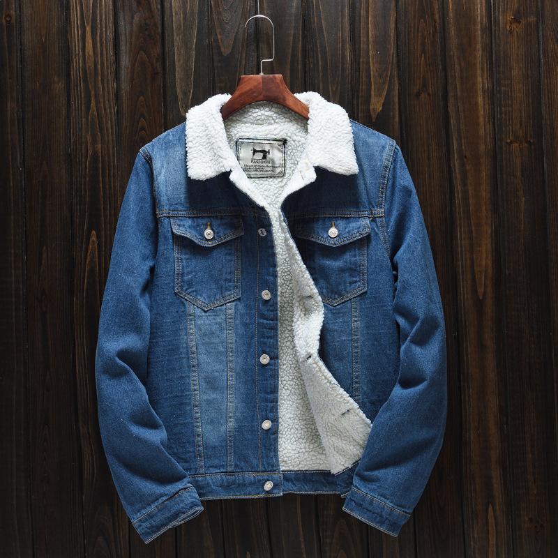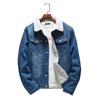 Chaqueta vaquera de lana de cordero azul de invierno para hombre, estilo coreano, talla grande, forrada con vellón, gruesa y ajustada.