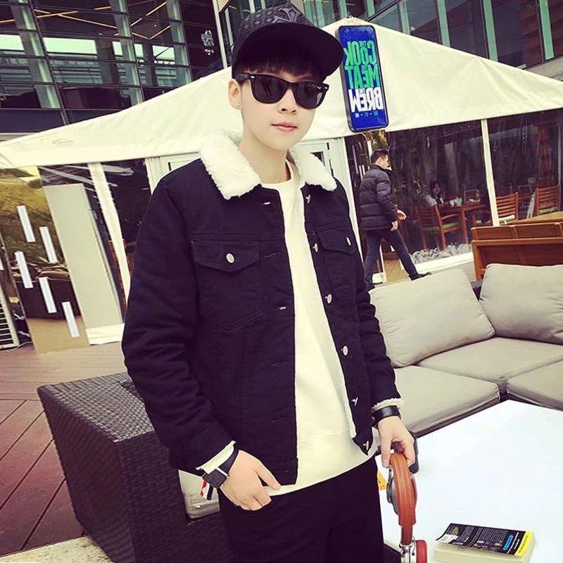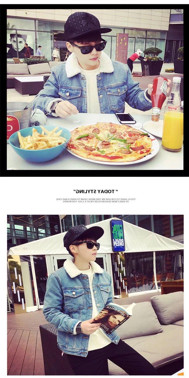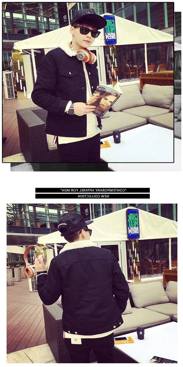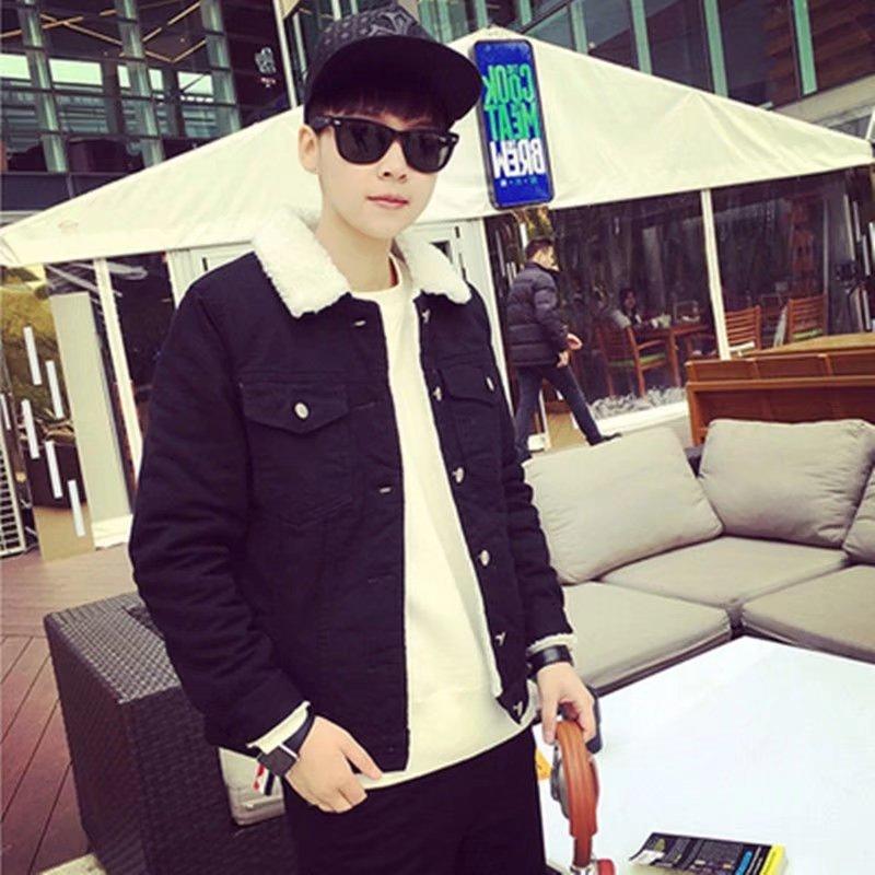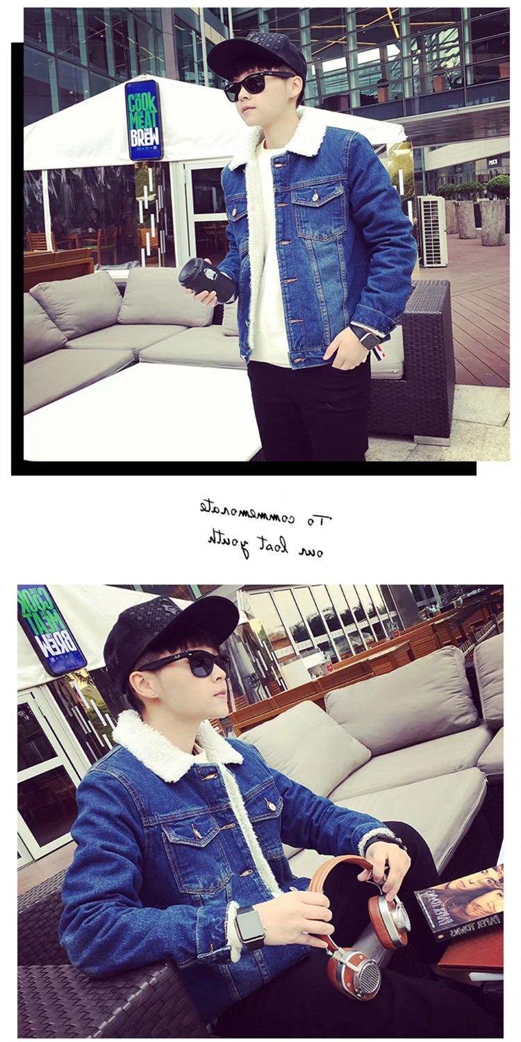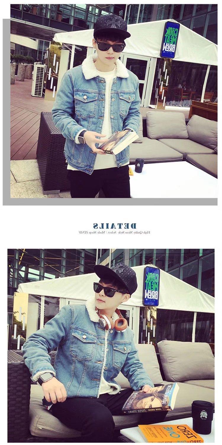 Chamarra de mezclilla gruesa con forro polar para hombre, chamarra de trabajo moderna, invierno, estilo coreano, combina con todo, ropa de algodón cálida