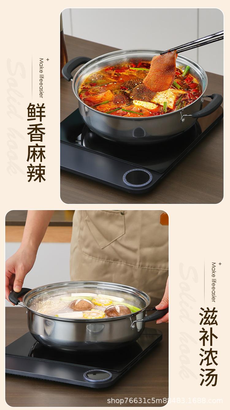Olla caliente de acero inoxidable engrosada, olla caliente, olla para sopa, estufa de gas comercial de gran capacidad para el hogar, cocina de inducción, regalo de apertura