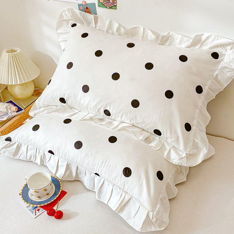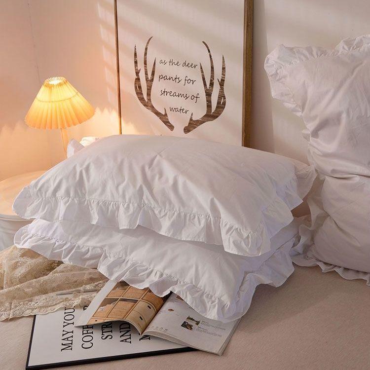 Juego de fundas de almohada con volantes estilo princesa coreana para estudiantes