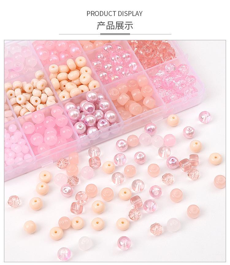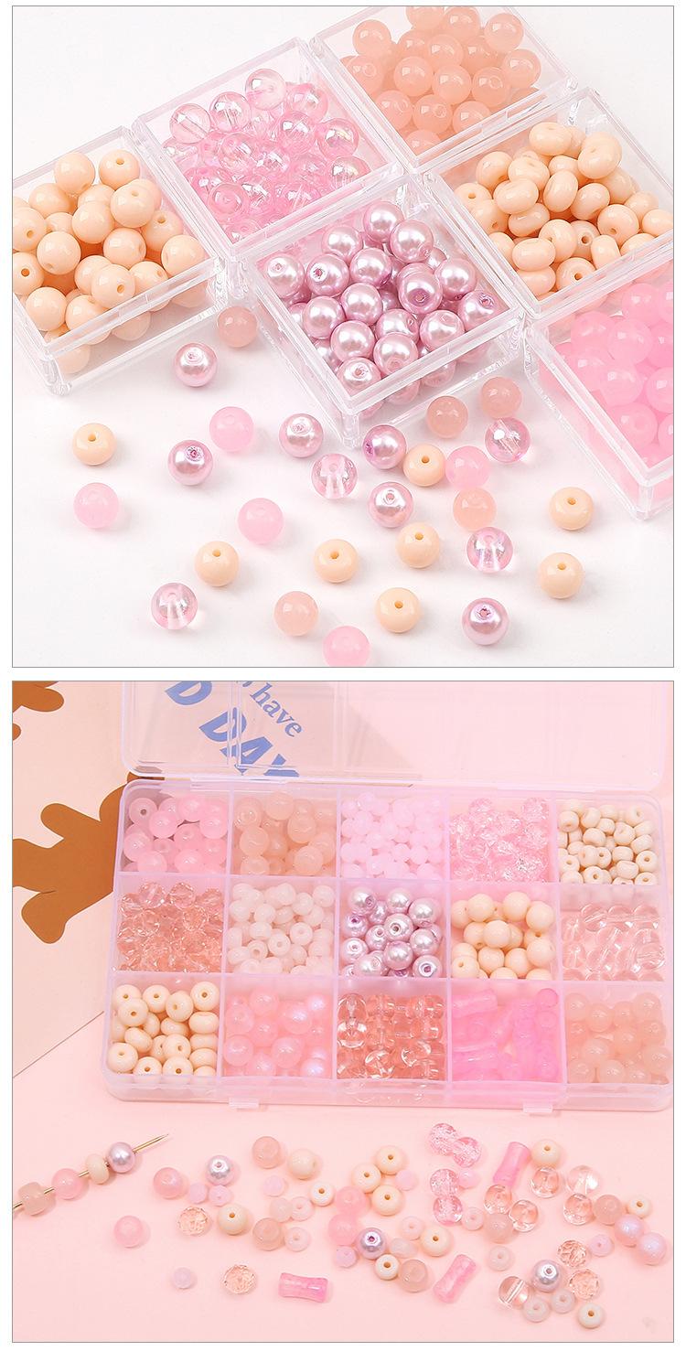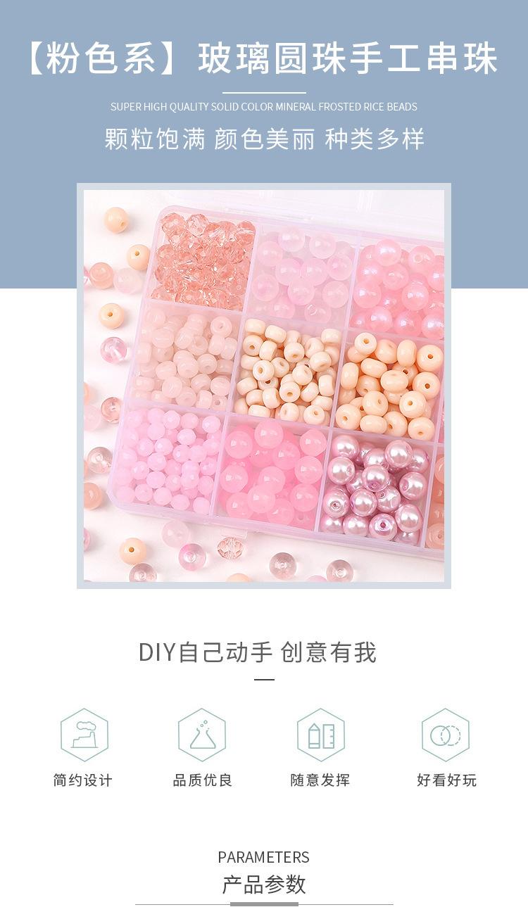 [Rosa] Juego de cuentas sueltas de vidrio, cuentas redondas, cuentas de rueda, accesorios para pulseras, material de cuentas hecho a mano
