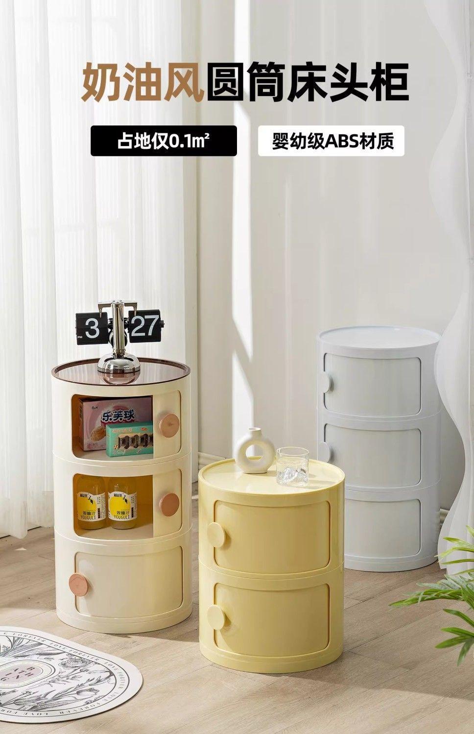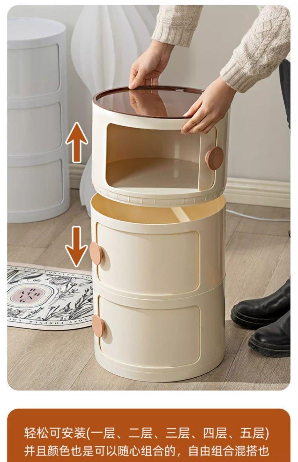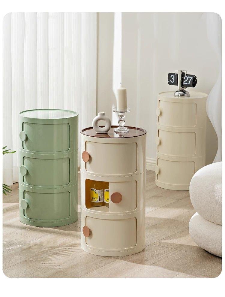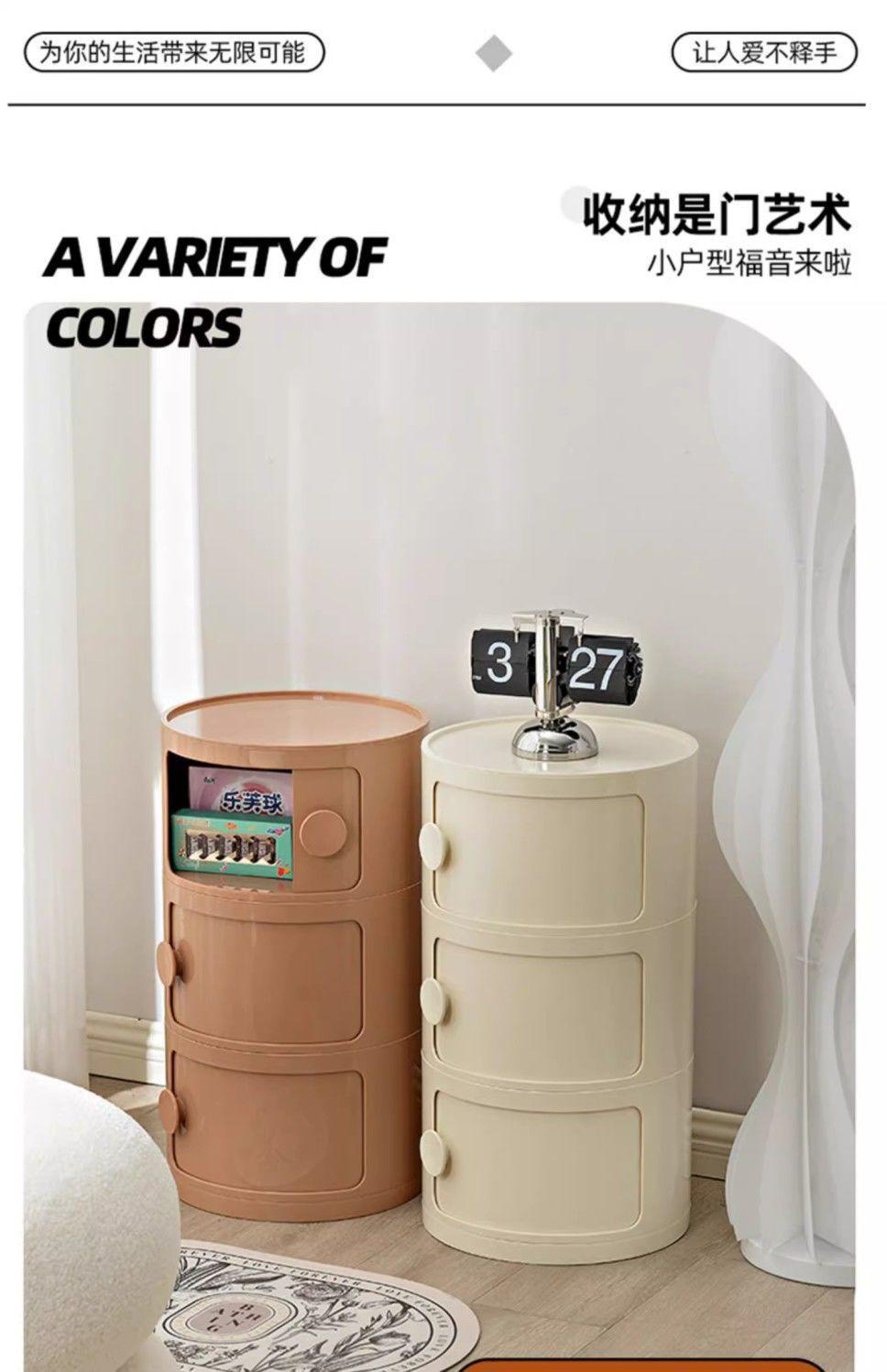 Mesita de noche nórdica Ins, sencilla y creativa, armario de almacenamiento multicapa, moderna vitrina auxiliar de plástico con diseño de celebridades de Internet, armario redondo