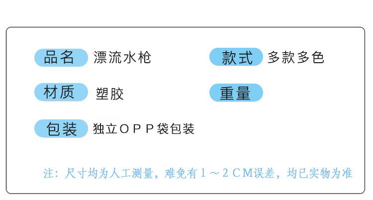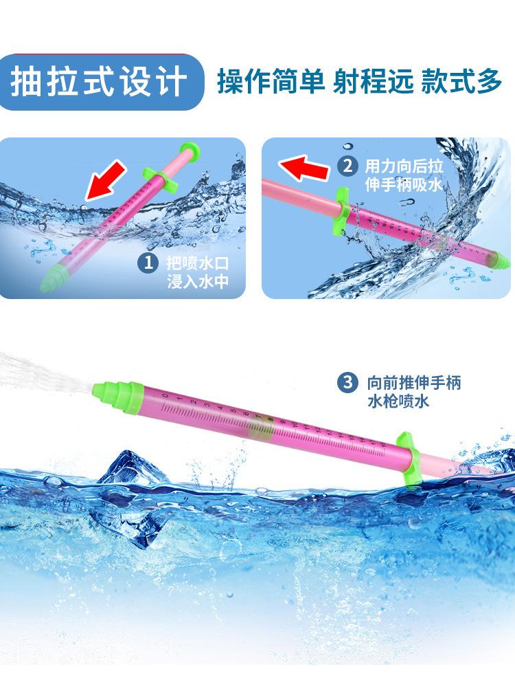 Small single tube 43cm, Large single tube 60cm, Long double tube 58cm, Syringe water gun 43cm, Curved handle w...