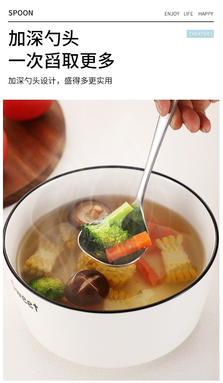 Cuchara sopera 304 para el hogar, cuchara sopera grande, cuchara de acero inoxidable, grado alimenticio, mango largo, cuchara coreana para sopa de arroz seco