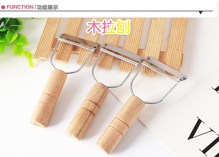 Nombre del producto: Cepilladora de madera Tamaño del producto: aproximadamente 13 cm de largo. Material del producto: acero inoxidable + madera. Embalaje del producto: a granel individual Número de cajas: 1000 piezas/caja |
