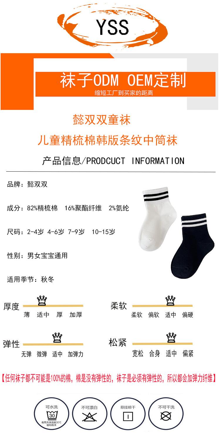 Yi Pair Calcetines para niños Otoño e Invierno Nuevos Calcetines de tubo medio a rayas de estilo coreano Calcetines deportivos de algodón peinado para estudiantes Calcetines grandes de algodón para niños