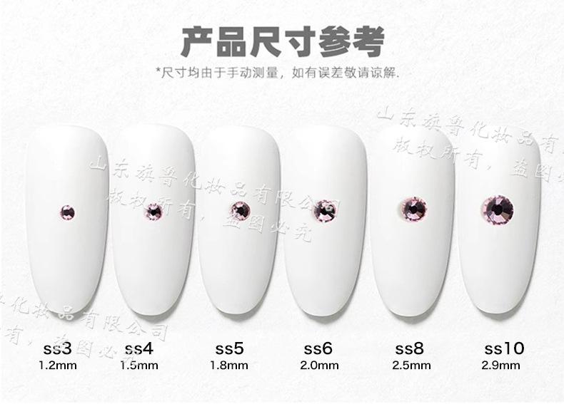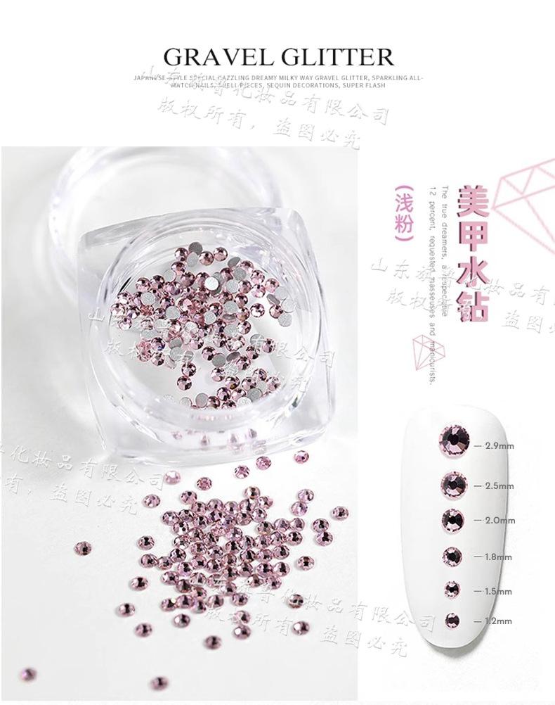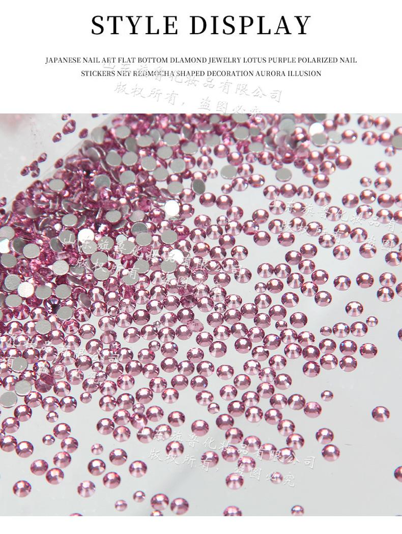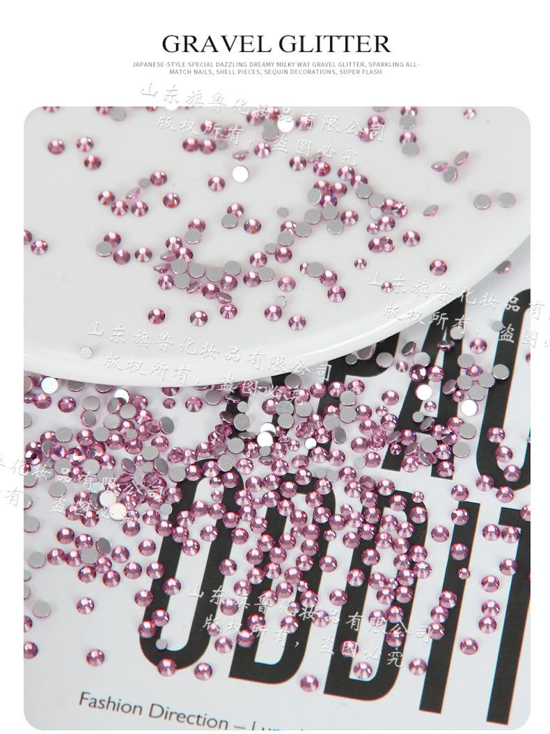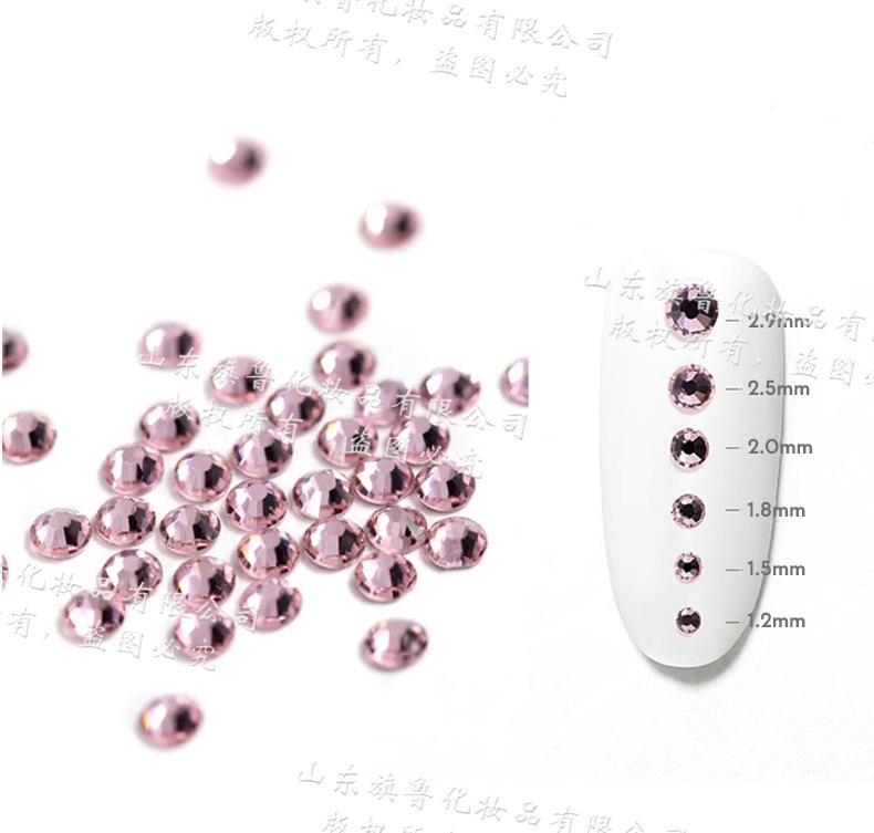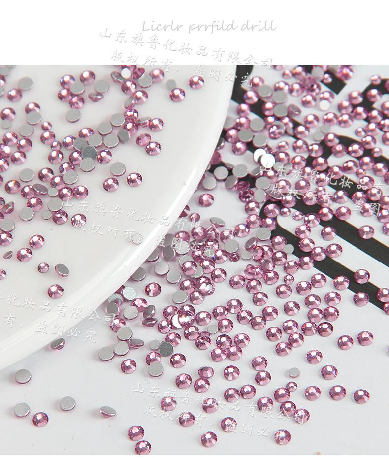 Arte de uñas rosa claro plano pequeño diamante redondo Super Flash oro fondo de diamante de imitación no gota fondo taladro de uñas completo diamante joyería accesorios de diamante