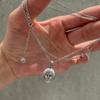 Collar ovalado de plata de ley S925 con diamantes cepillados en forma de huevo para mujer, estilo retro, de lujo, de alta gama, combinable con todo.