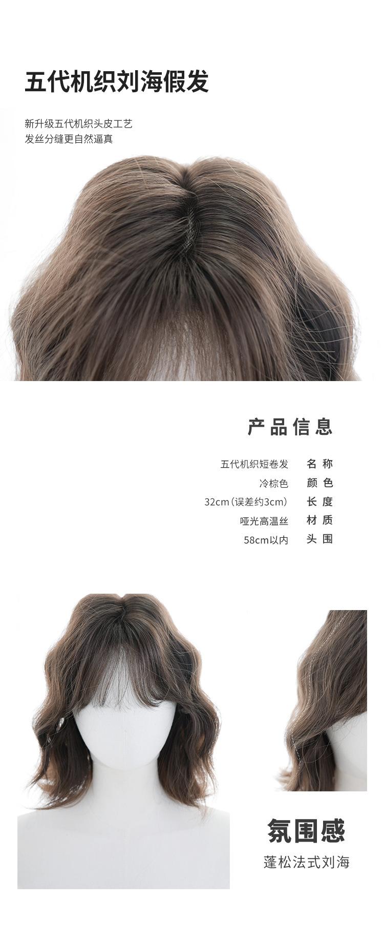 Peluca de Otoño para Mujer Venta al por Mayor Transfronteriza Diaria Celebridad de Internet Cabello Corto Rizado Flequillo Francés Natural Elegante Moda Estilo de Tocado Completo