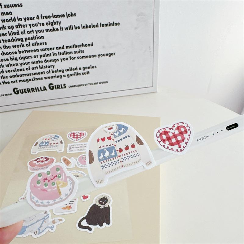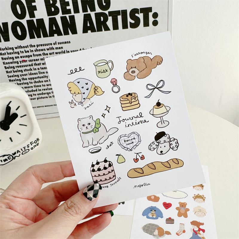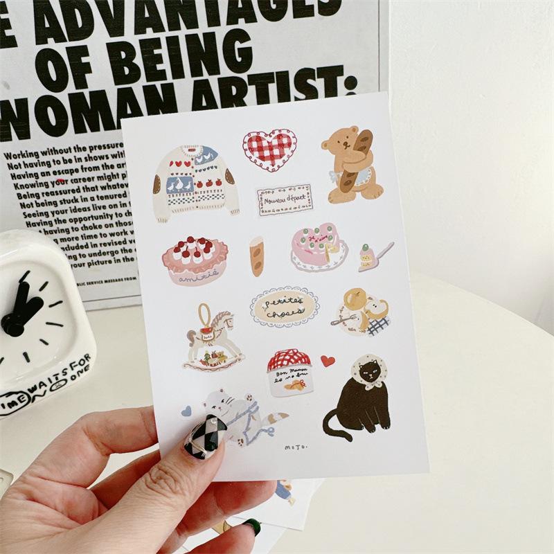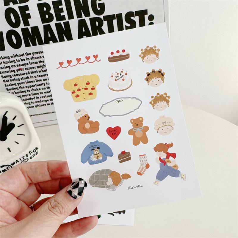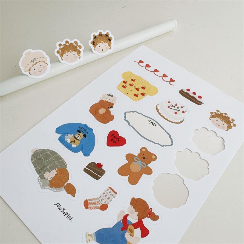 Pegatina de material de superficie mate con fondo transparente y cuenta de mano de estilo pastoral europeo con diseño de oso de niña de dibujos animados de Corea