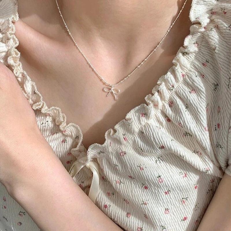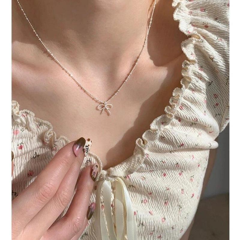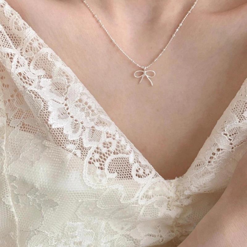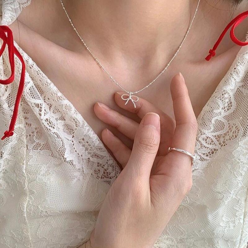Collar de lazo de plata esterlina S925 para mujer, diseño irregular, elegante, estilo nicho, cadena de clavícula de alta calidad.