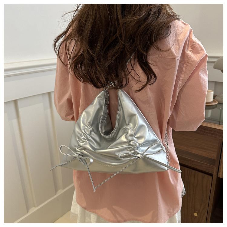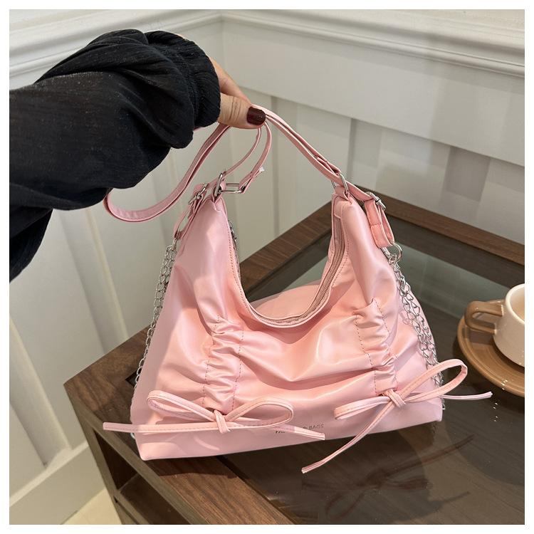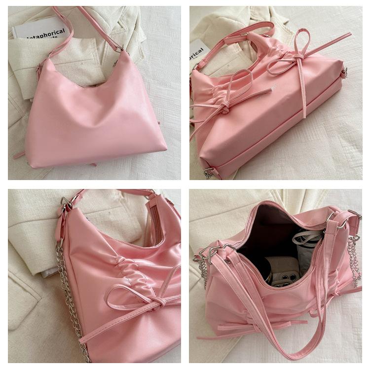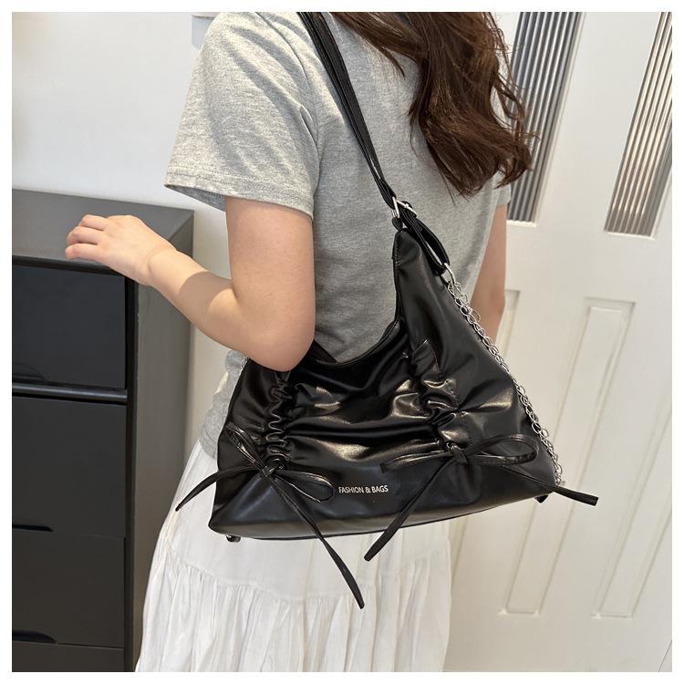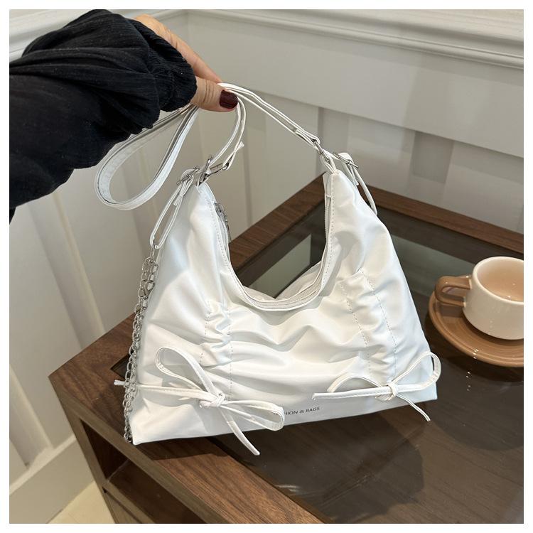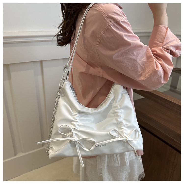 Mochila plisada de gran capacidad con lazo para mujer, nueva moda 2024, bolso de mano para estudiantes universitarios.