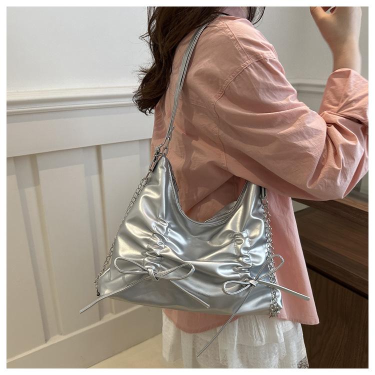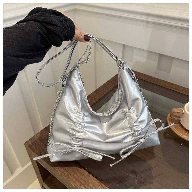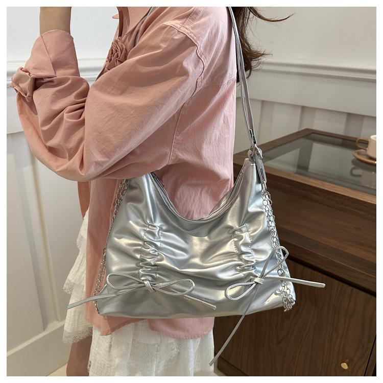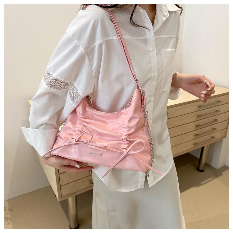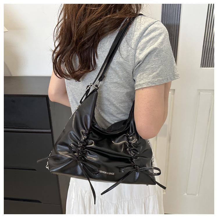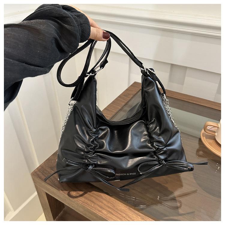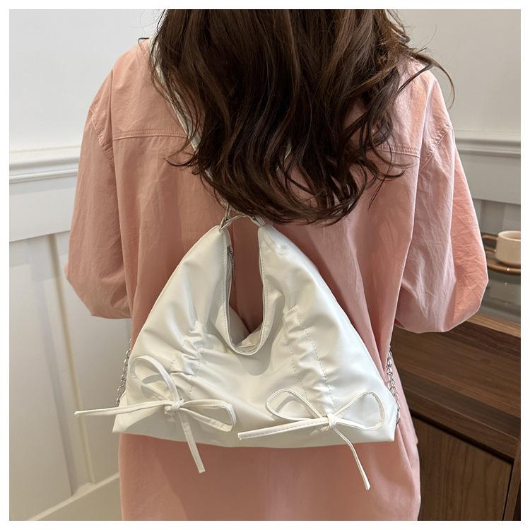 Mochila plisada de gran capacidad con lazo para mujer, nueva moda 2024, bolso de mano para estudiantes universitarios.