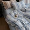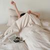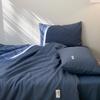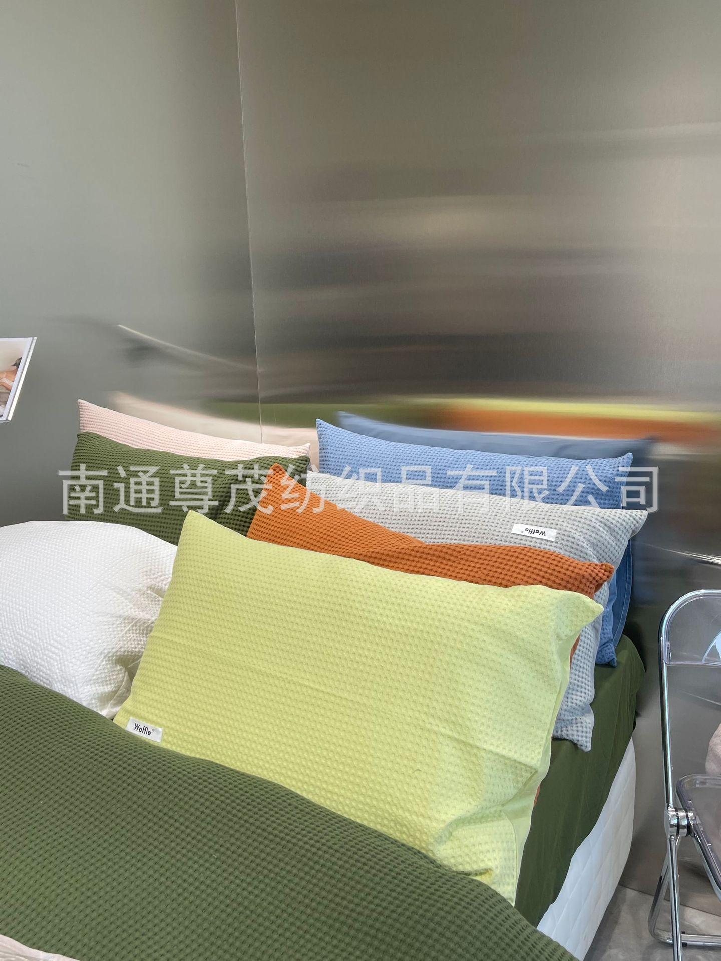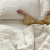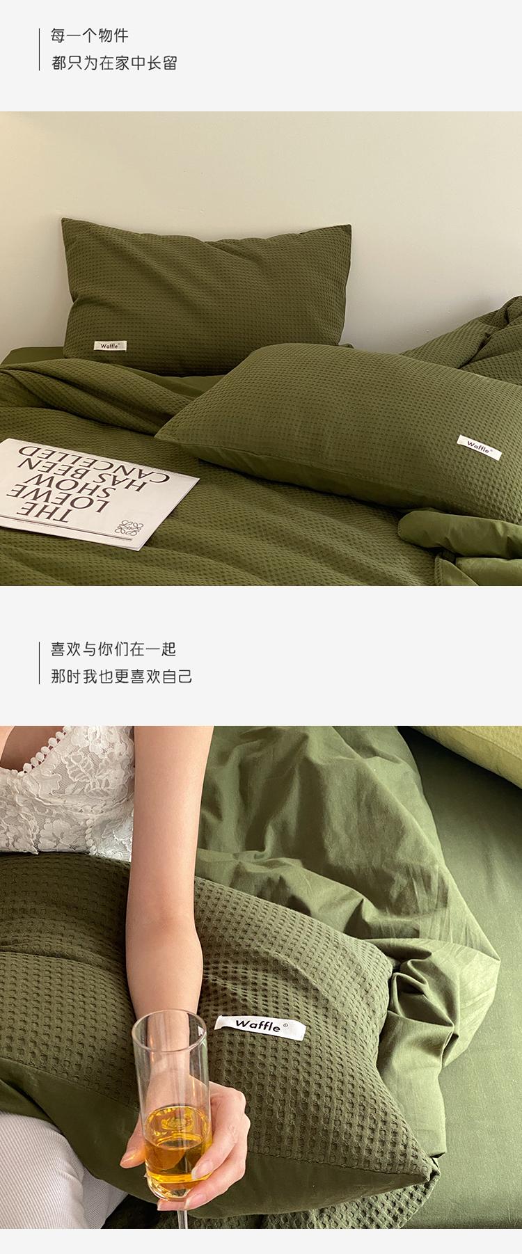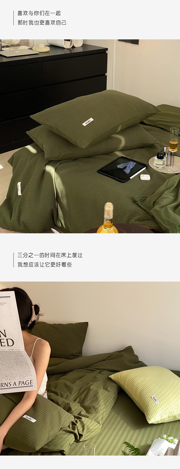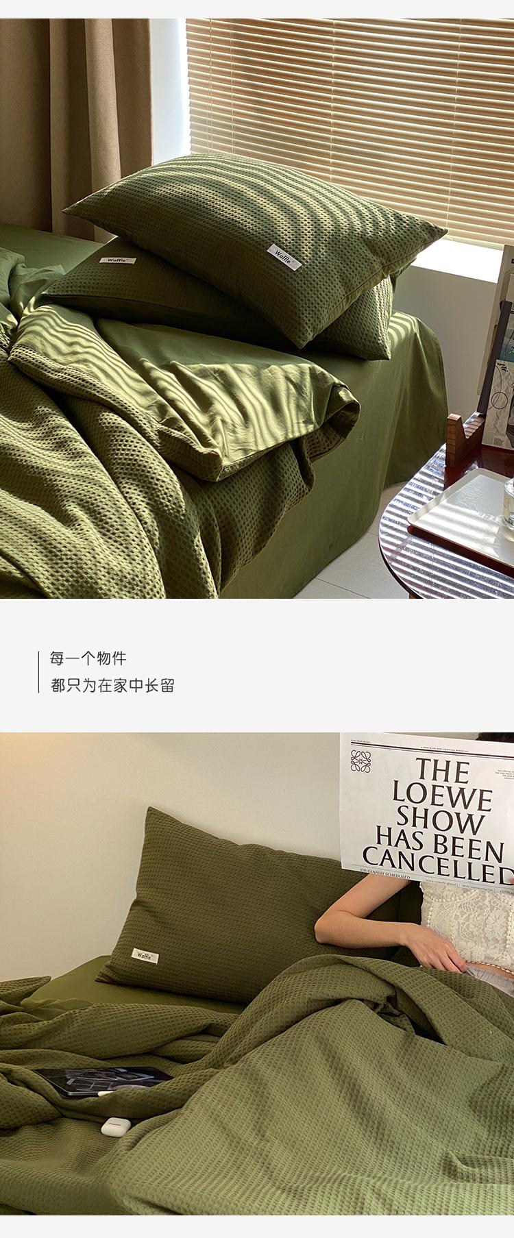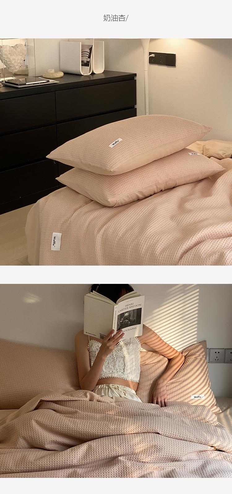 Esta ropa de cama tiene dos lados, A y B. El lado A está hecho de material waffle, que es absorbente del sudor y transpirable, ligeramente áspero, y de alta densidad y engrosado; el lado B es ajustado, hecho de algodón lavado de 40 hilos, cómodo y suave, con un tacto delicado. ¡Todo el juego de ropa de cama tiene una confección exquisita y costuras finas!