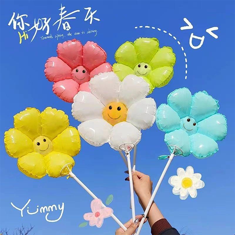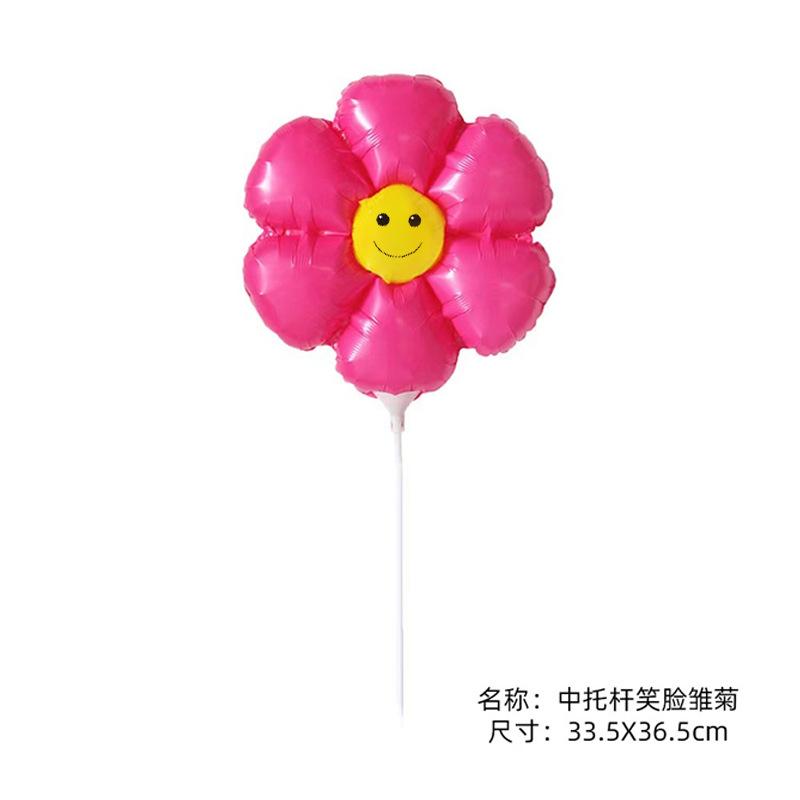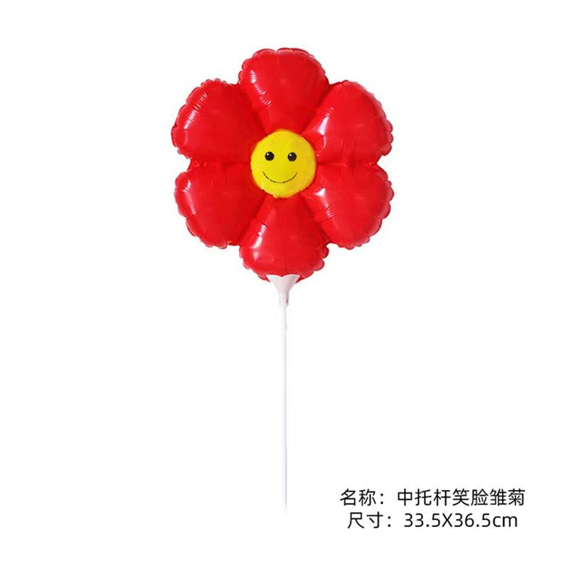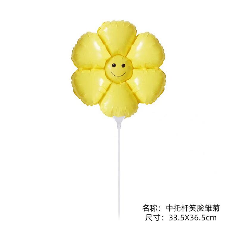 Girasol Cara Sonriente Flor Globo Mano Sosteniendo Red Ins Daisy Puesto Empujar Girasol Película de Aluminio Venta al por Mayor