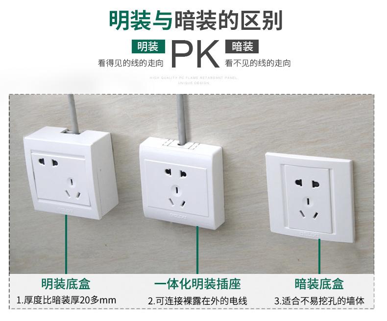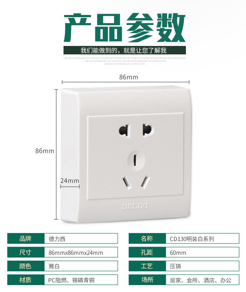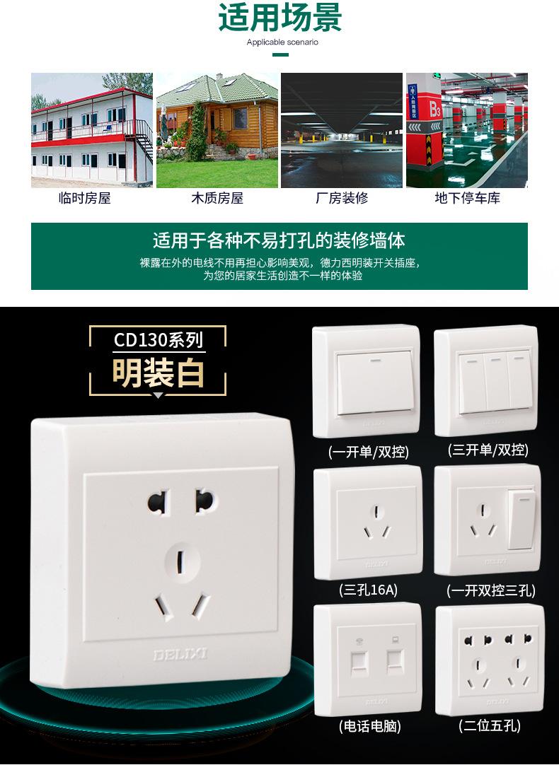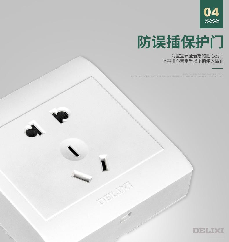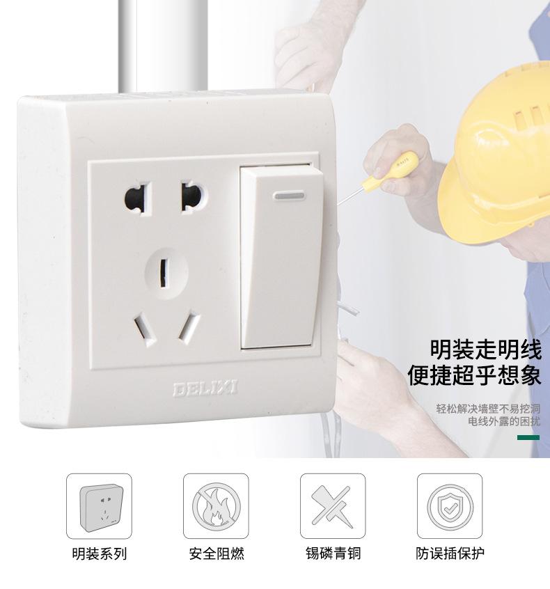 Delixi panel de interruptor de pared tipo 86 de montaje superficial doméstico para ingeniería uno dos tres sencillo abierto doble control multi-enchufe de 15 orificios