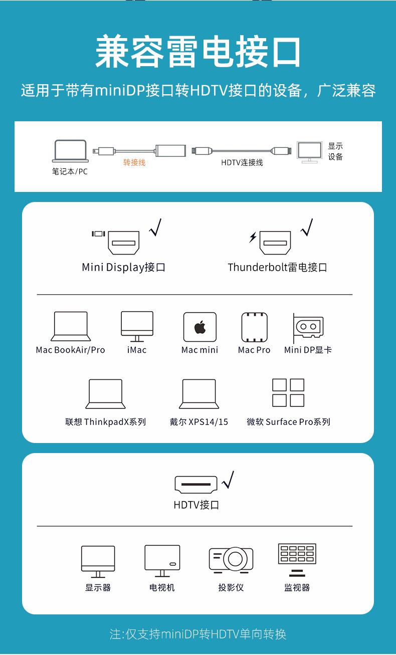 ◇ Diseñado estrictamente de acuerdo con los estándares Mini DisplayPort y en línea con las especificaciones Mini DisplayPort de Apple, la transmisión de señal es estable y confiable.