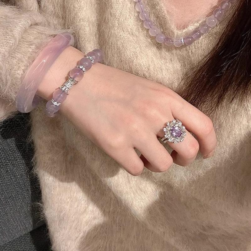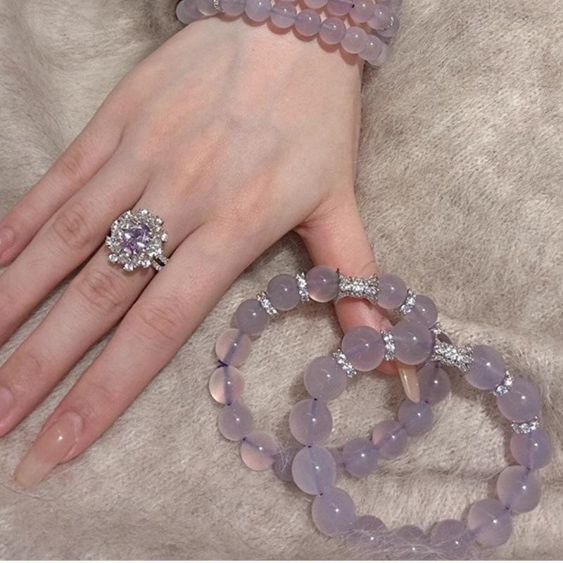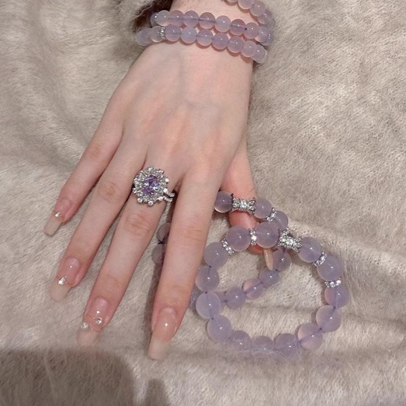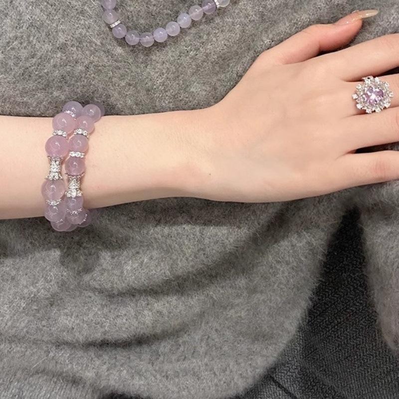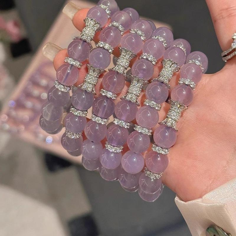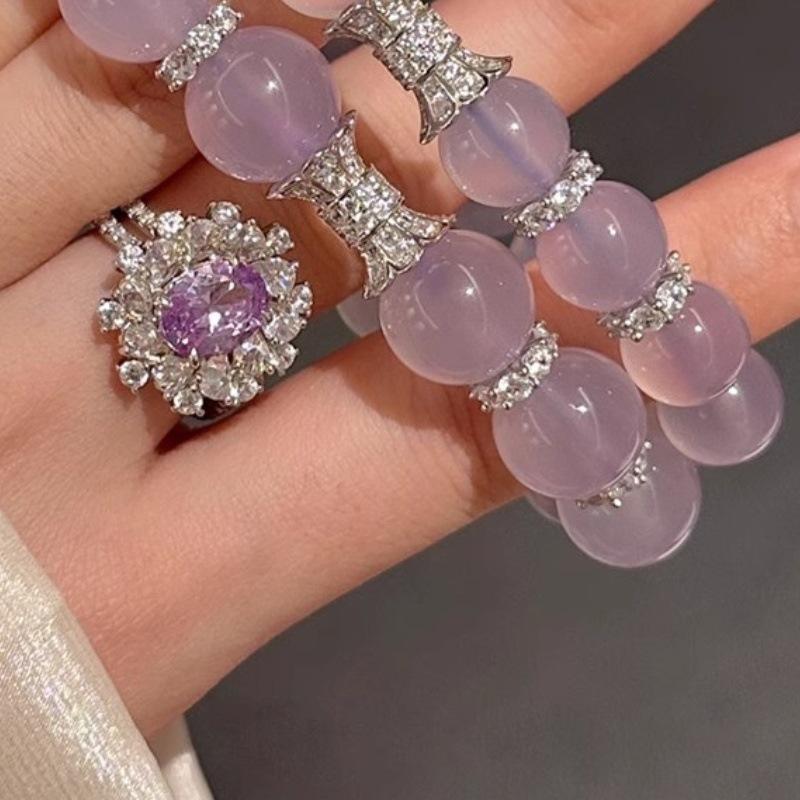 En la nueva pulsera de calcedonia morada para mujer, pulsera color esmeralda violeta, estilo étnico, para enviar a novias