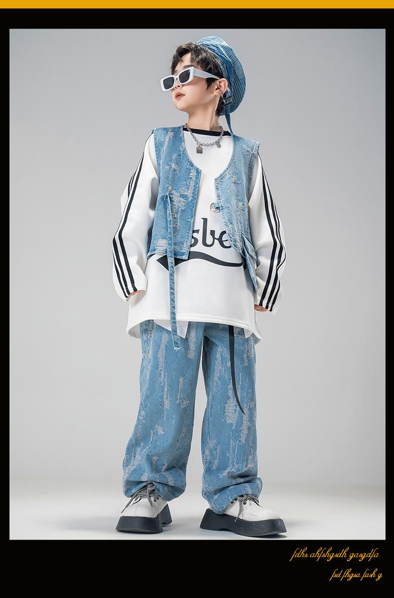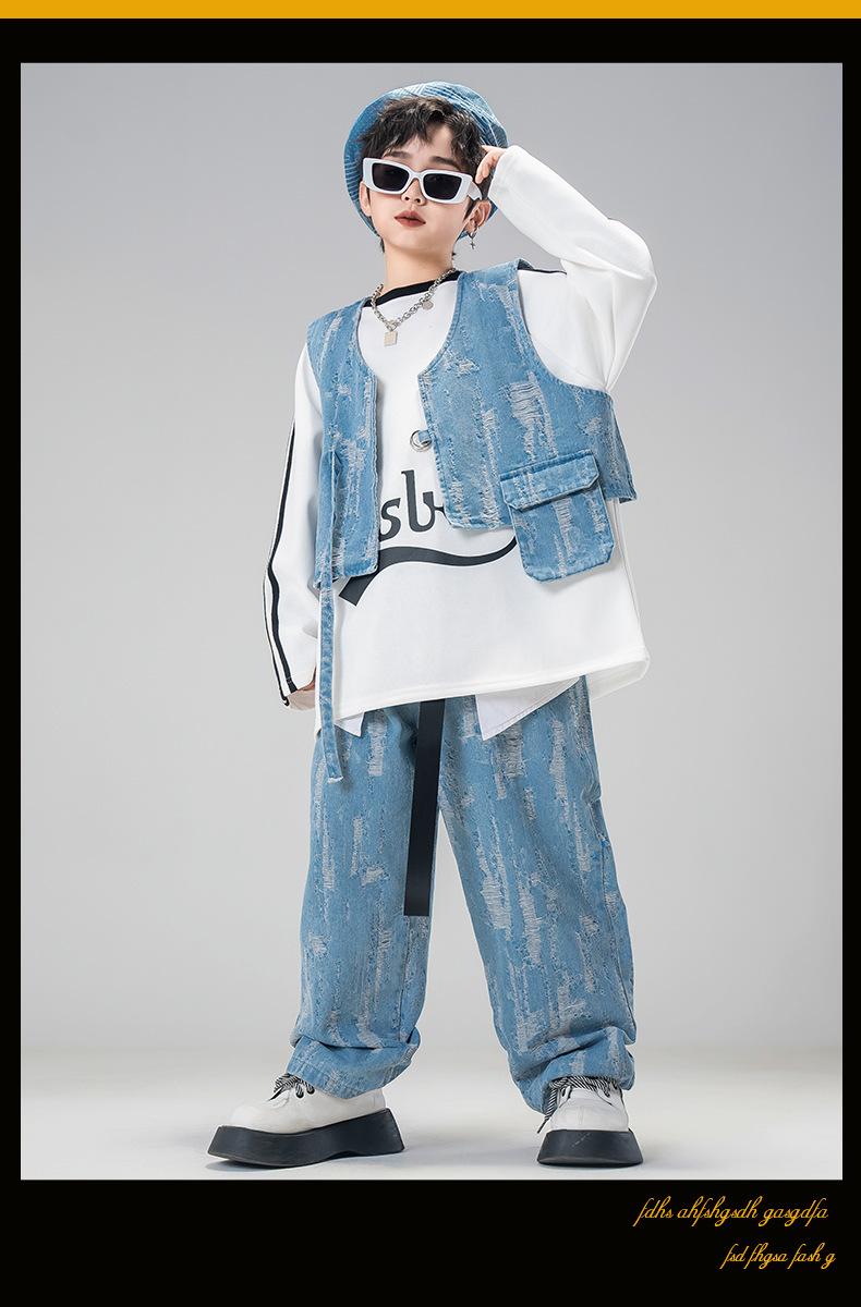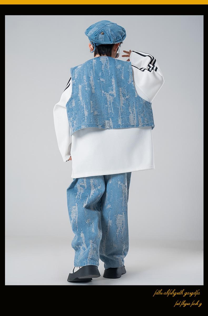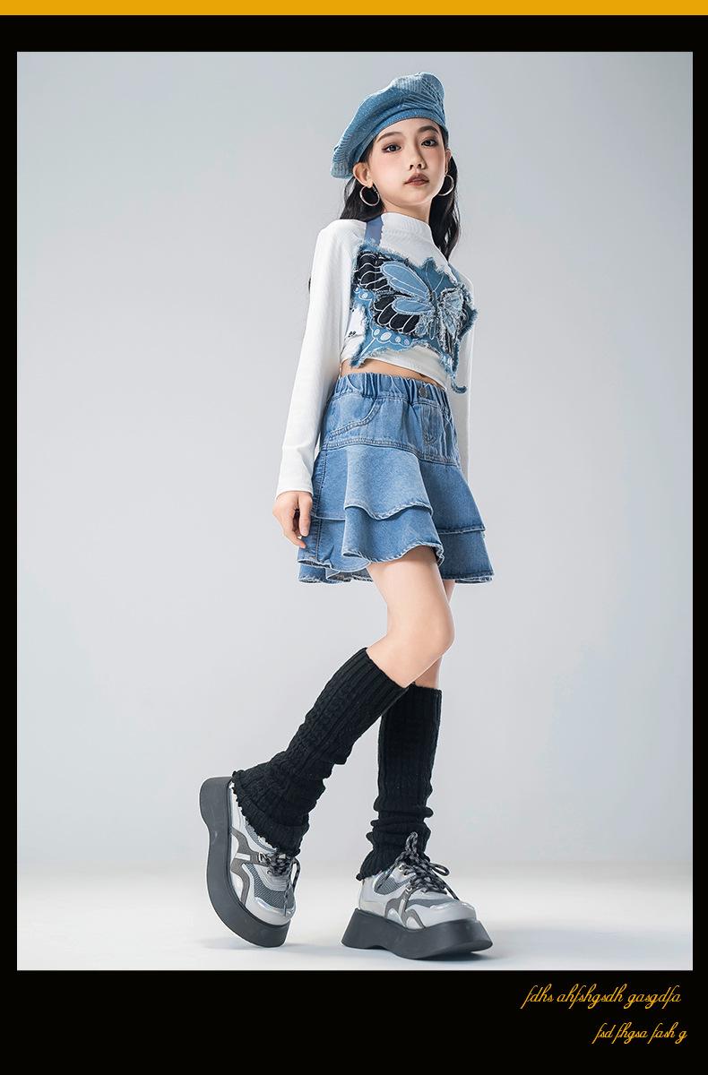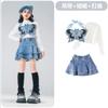 Denim butterfly, Patch Denim trousers, Pure white long-sleeved bottoming shirt (order Note color), Denim butte...
