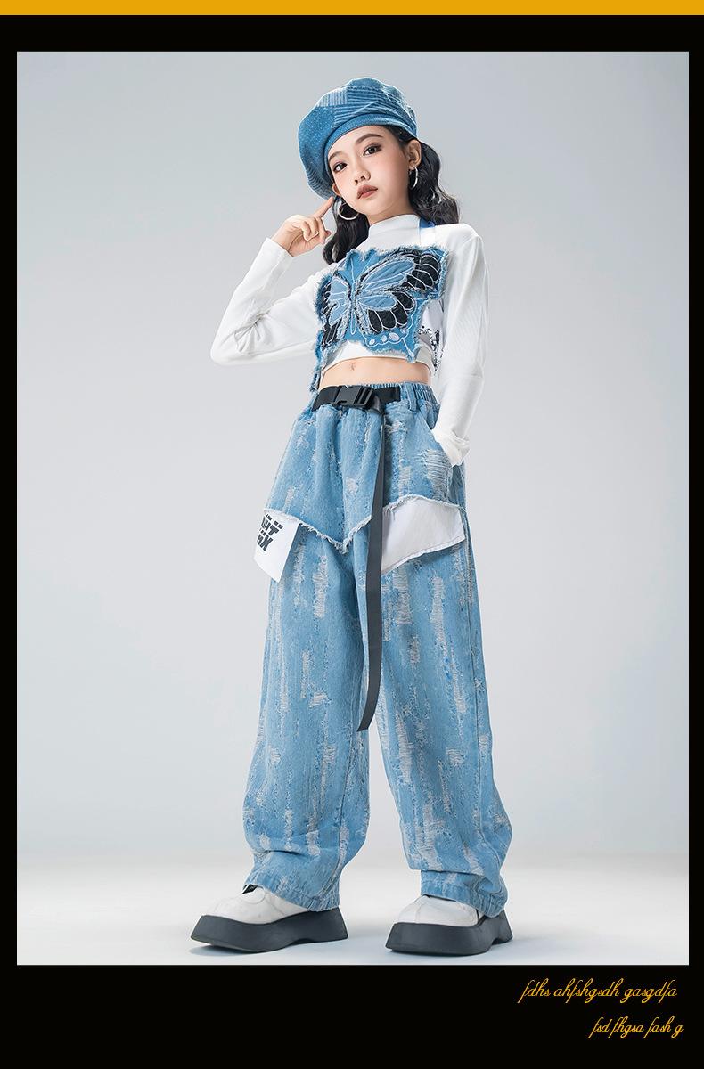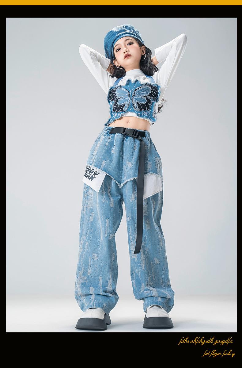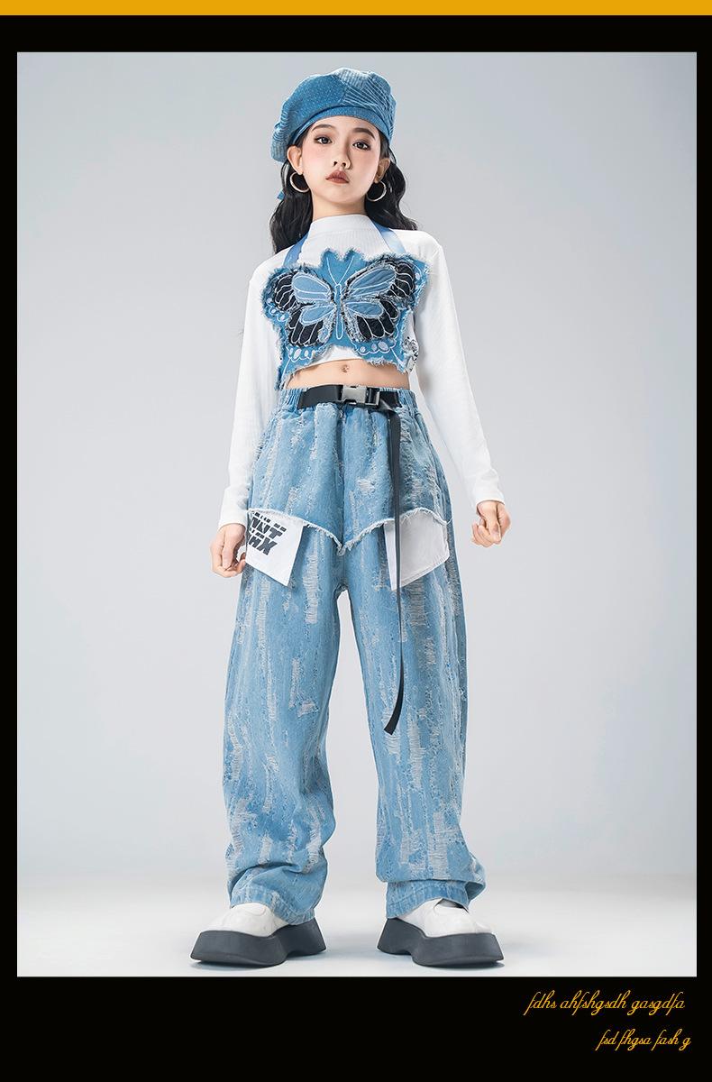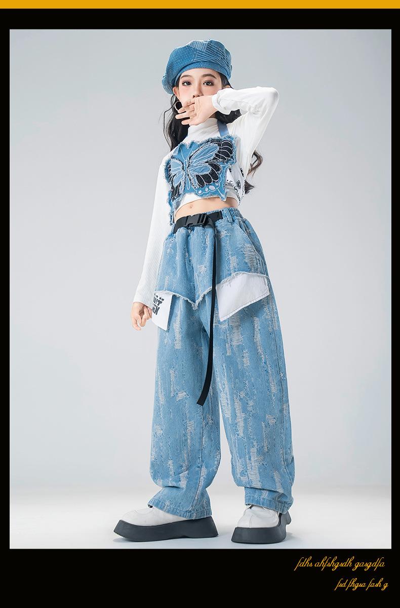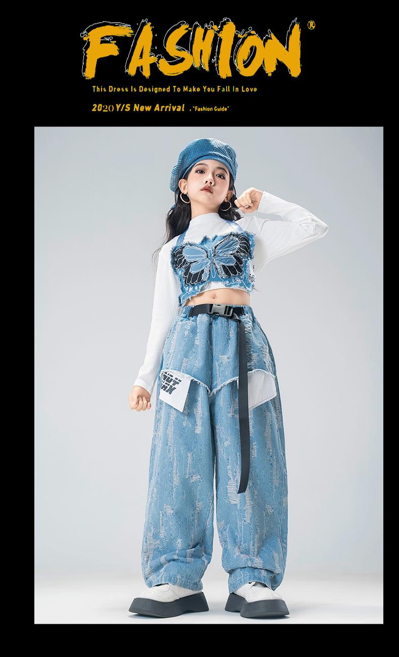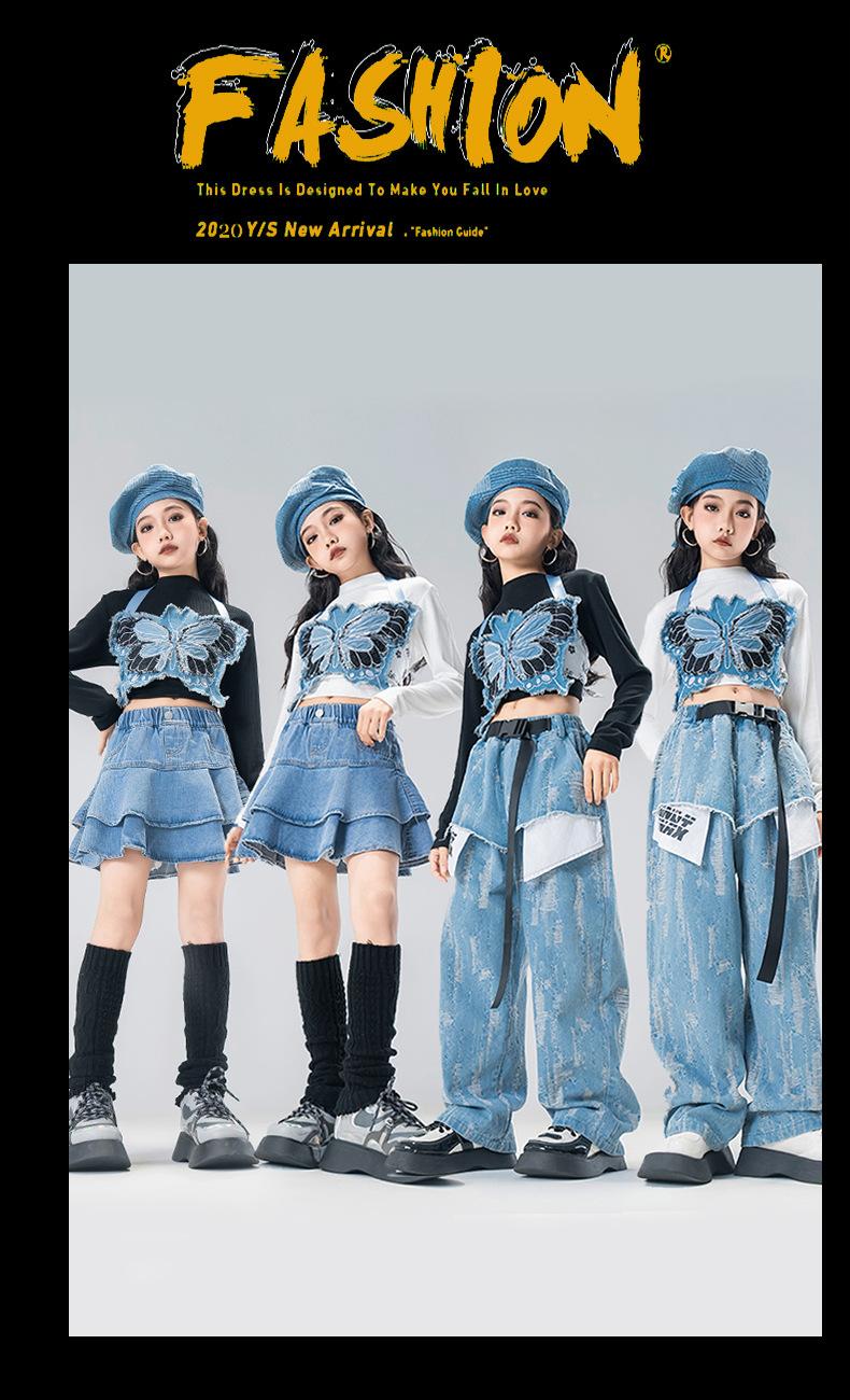 Disfraz de baile de jazz para niñas, disfraz de actuación infantil, disfraz de pasarela de hip hop para niñas, disfraz de mariposa vaquera para actuación grupal femenina.