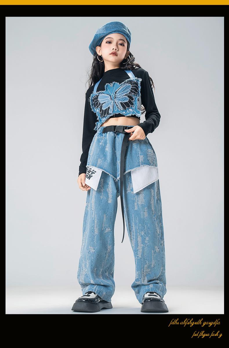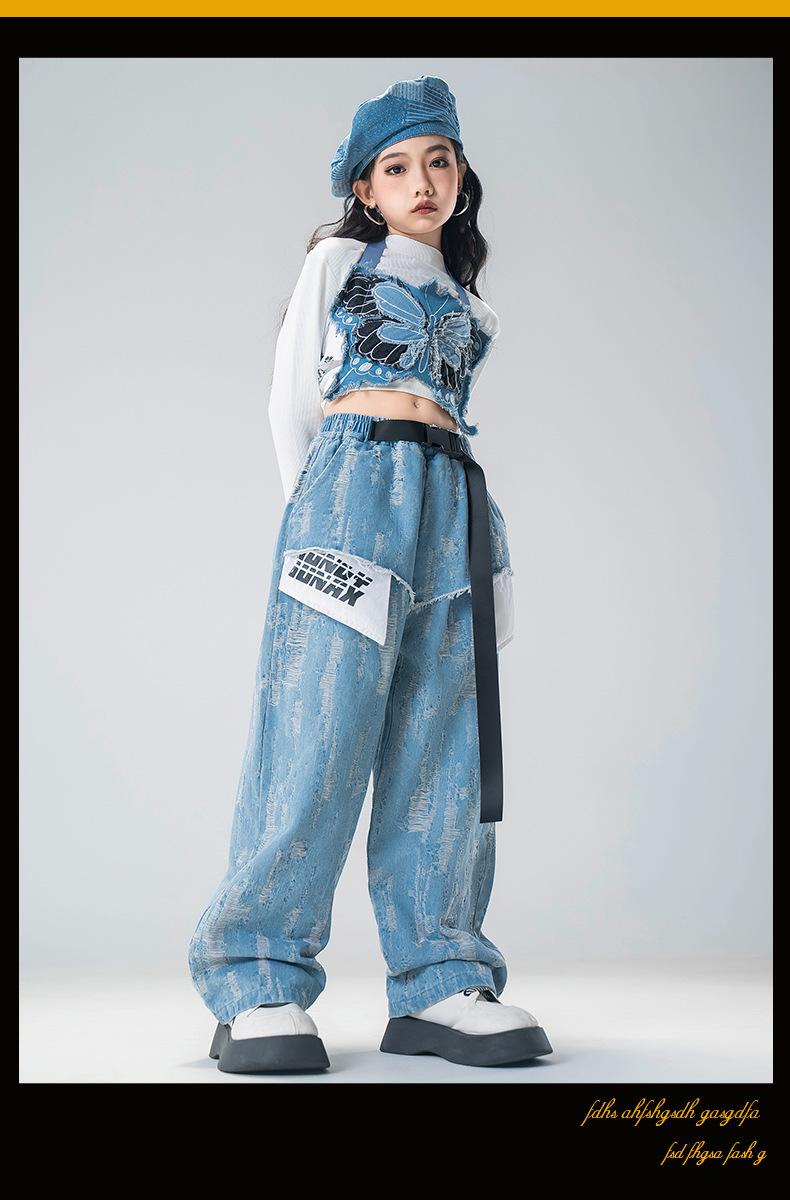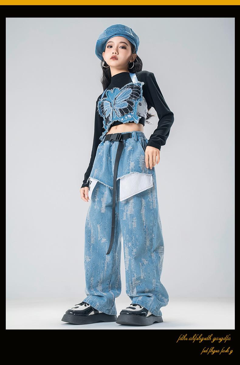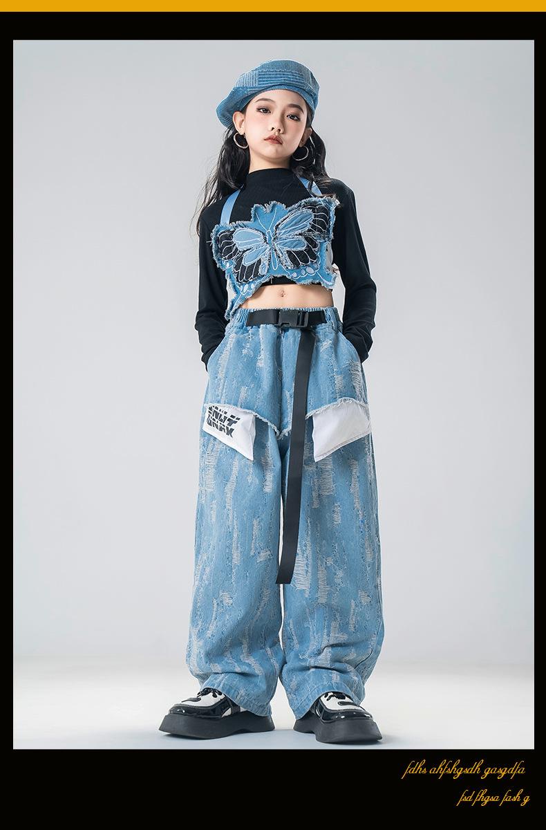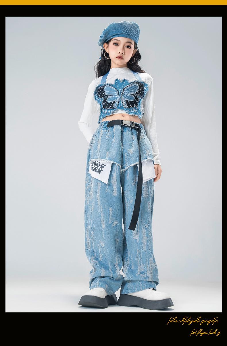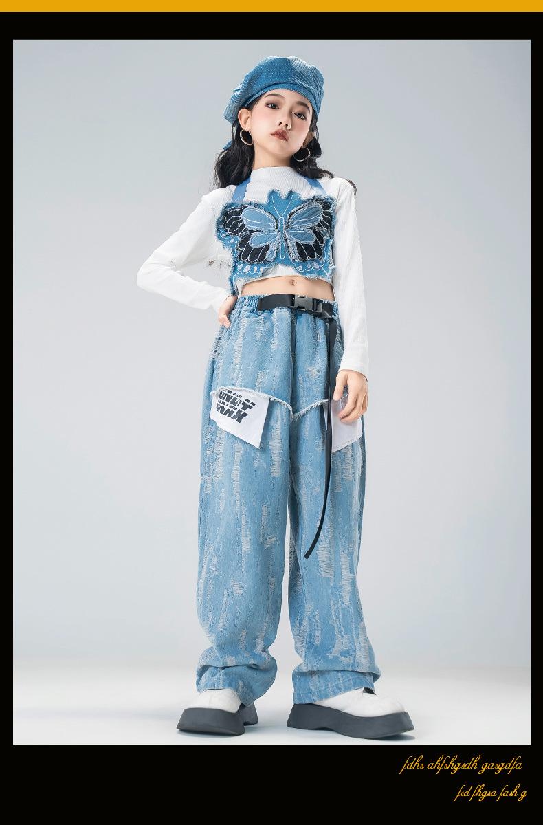 Disfraz de baile de jazz para niñas, disfraz de actuación infantil, disfraz de pasarela de hip hop para niñas, disfraz de mariposa vaquera para actuación grupal femenina.