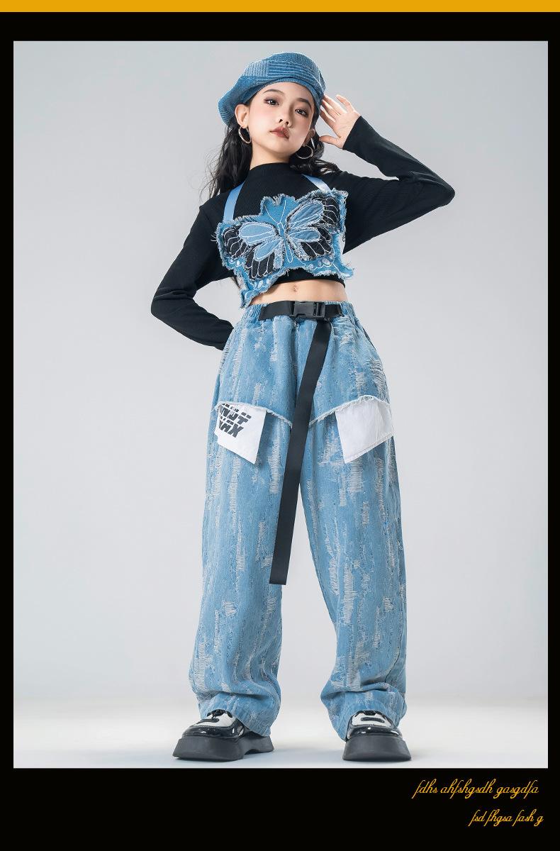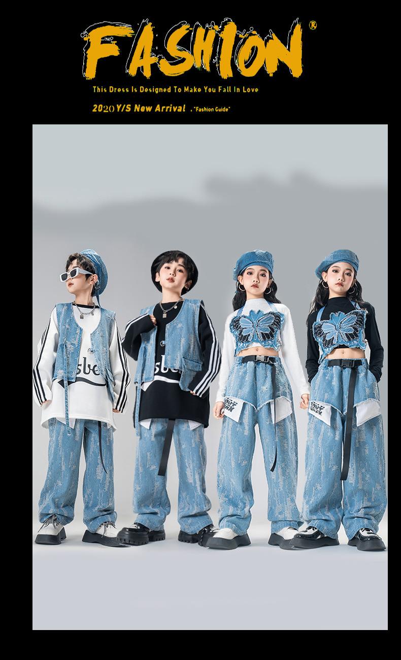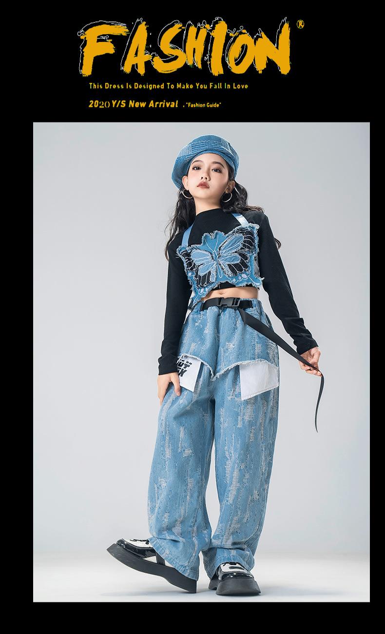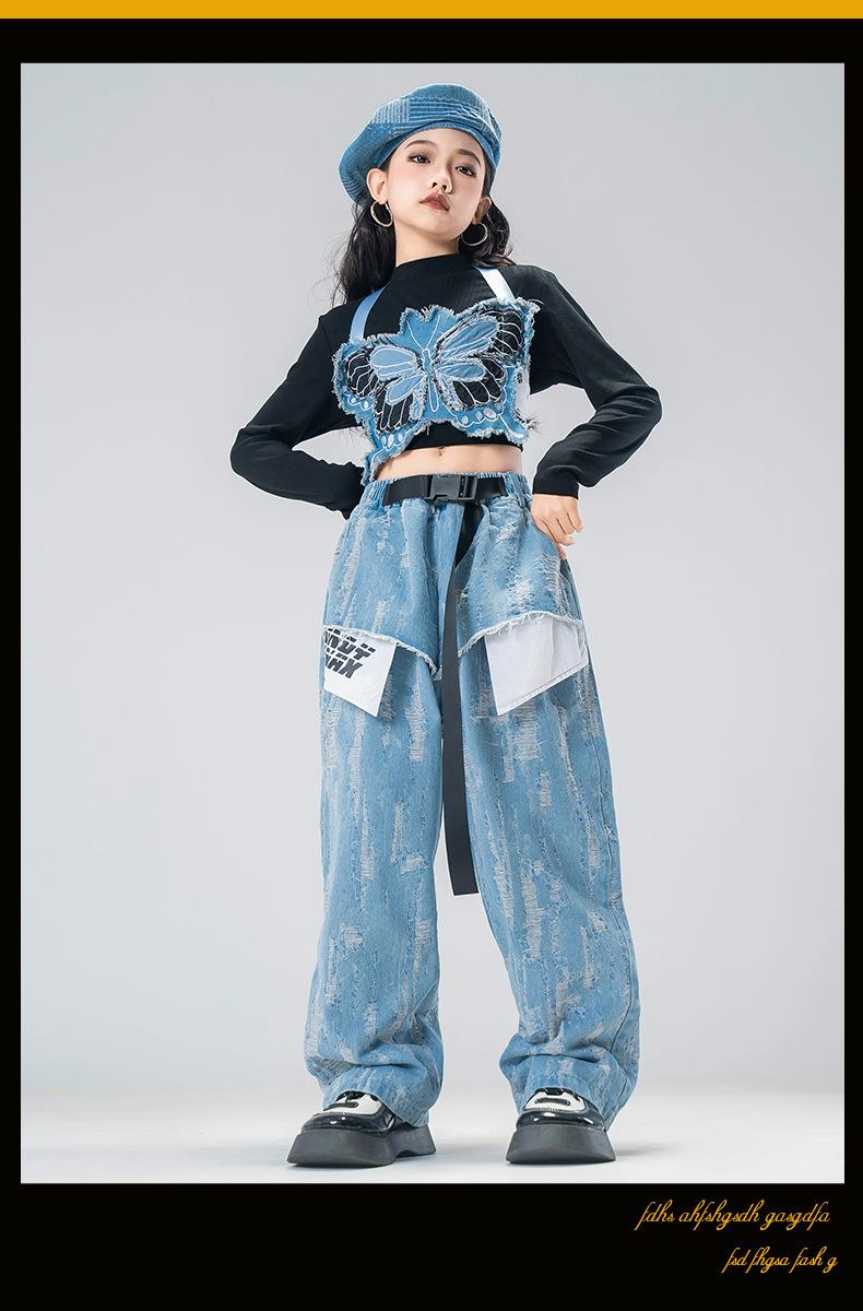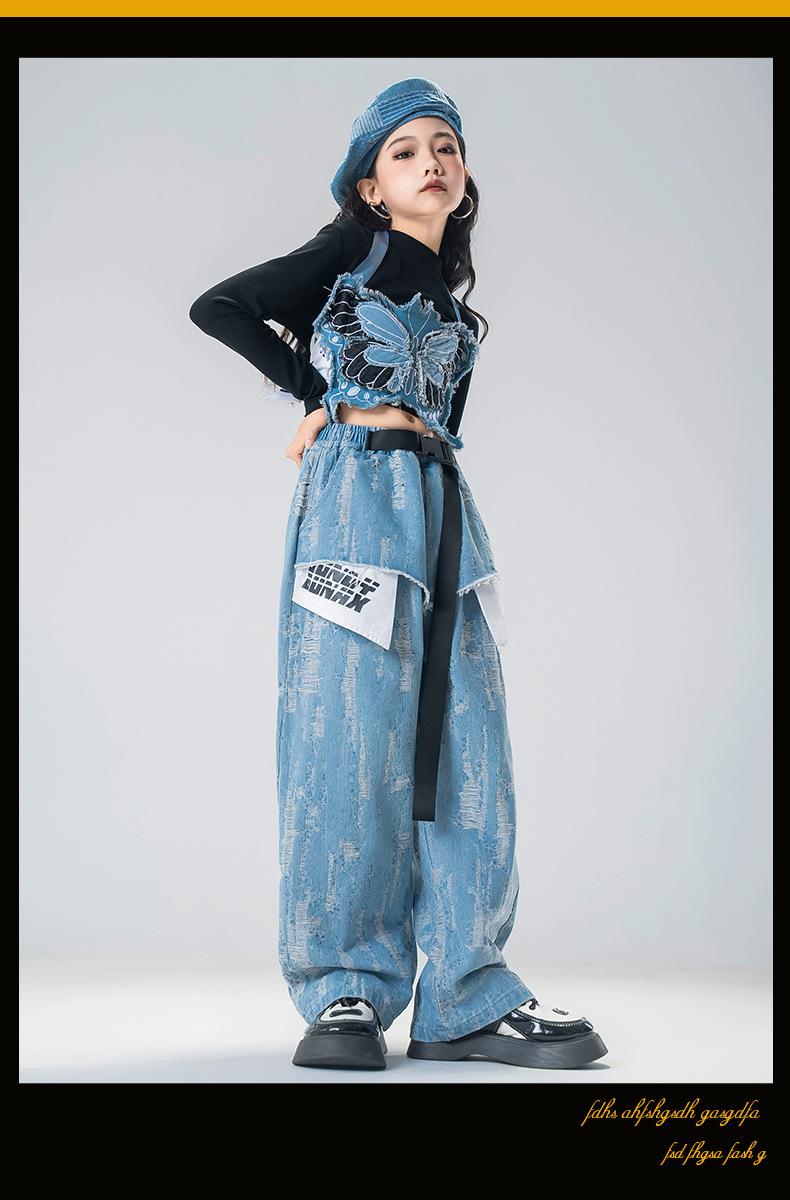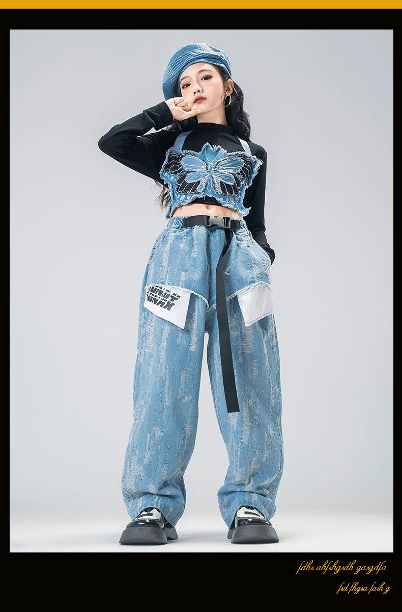 Disfraz de baile de jazz para niñas, disfraz de actuación infantil, disfraz de pasarela de hip hop para niñas, disfraz de mariposa vaquera para actuación grupal femenina.