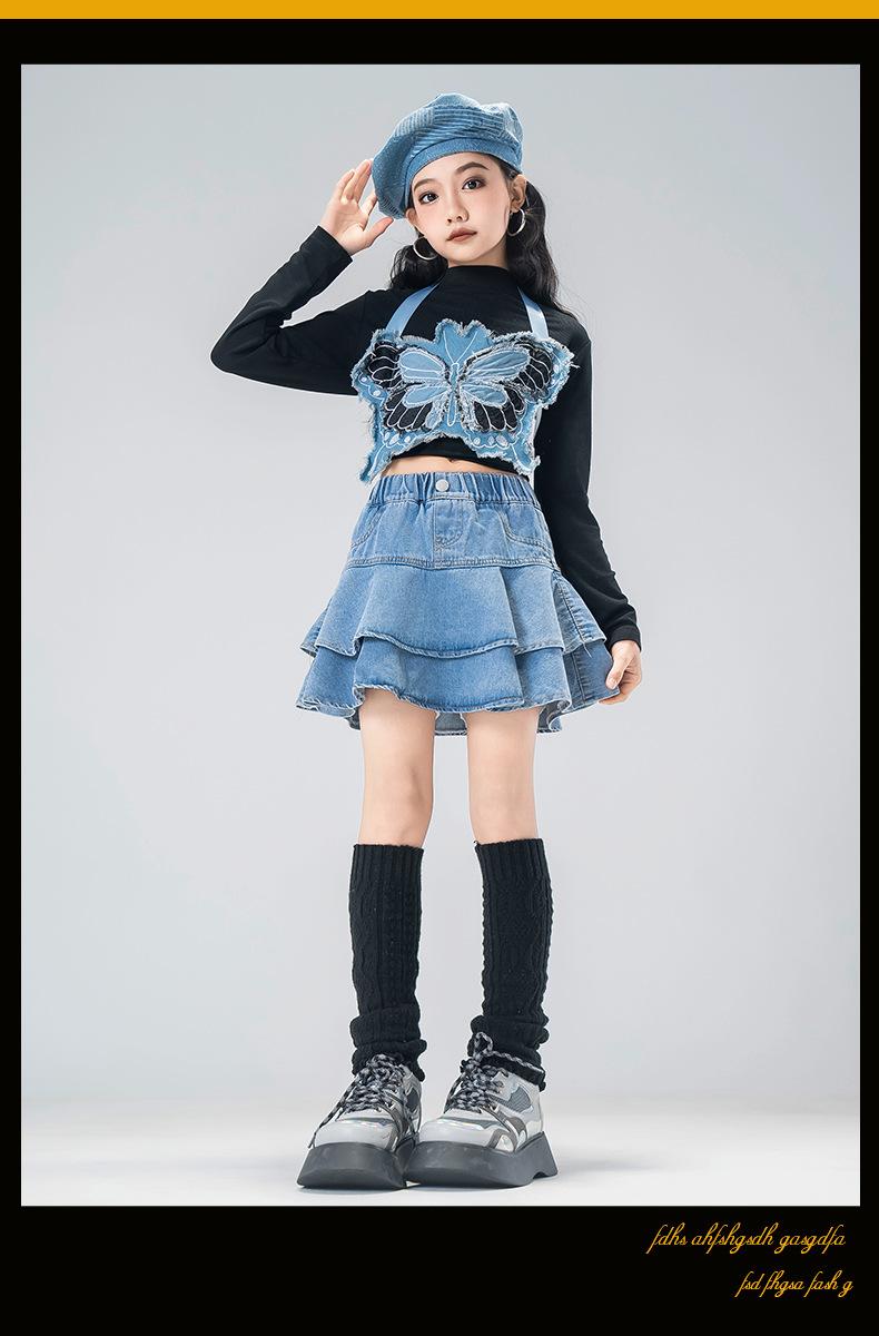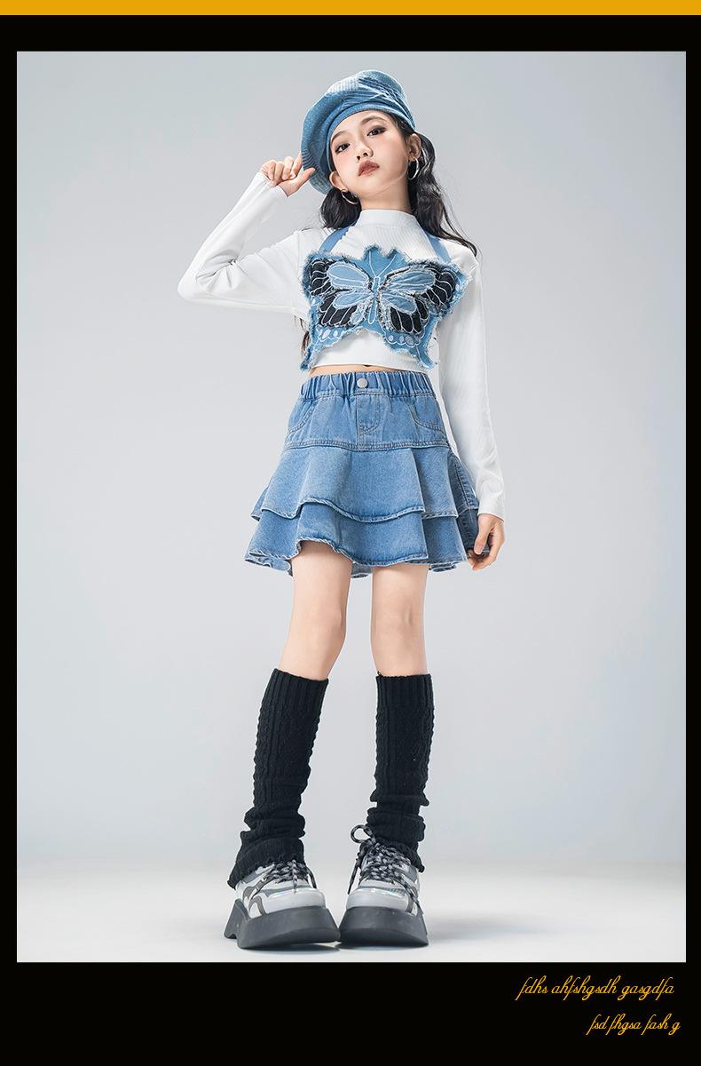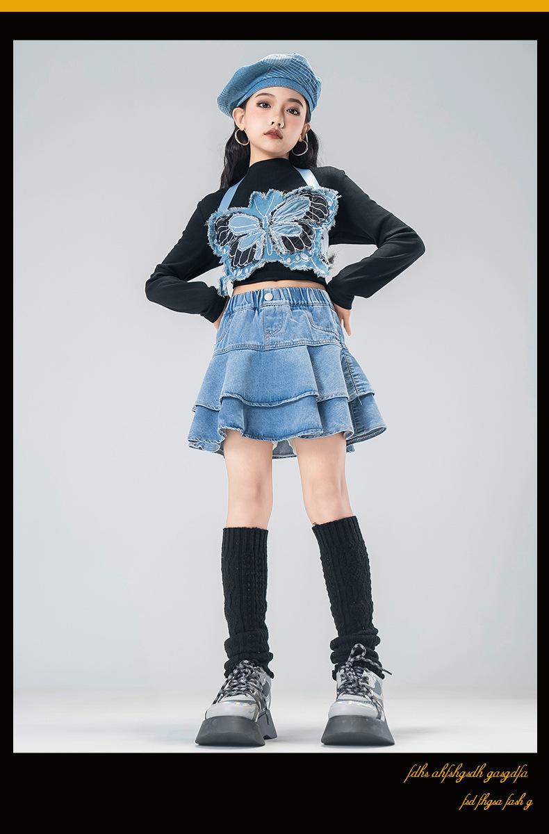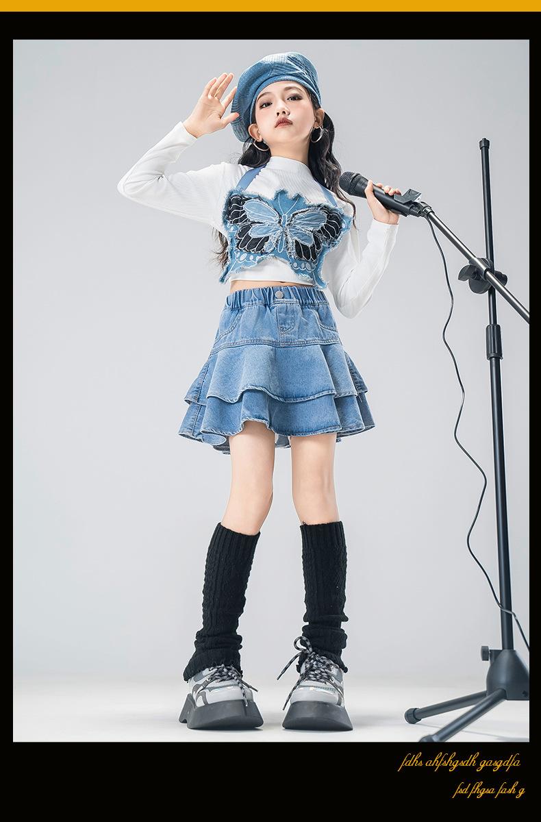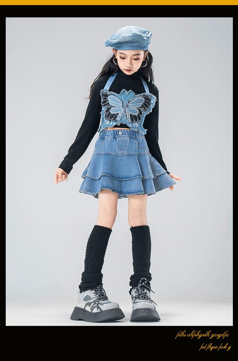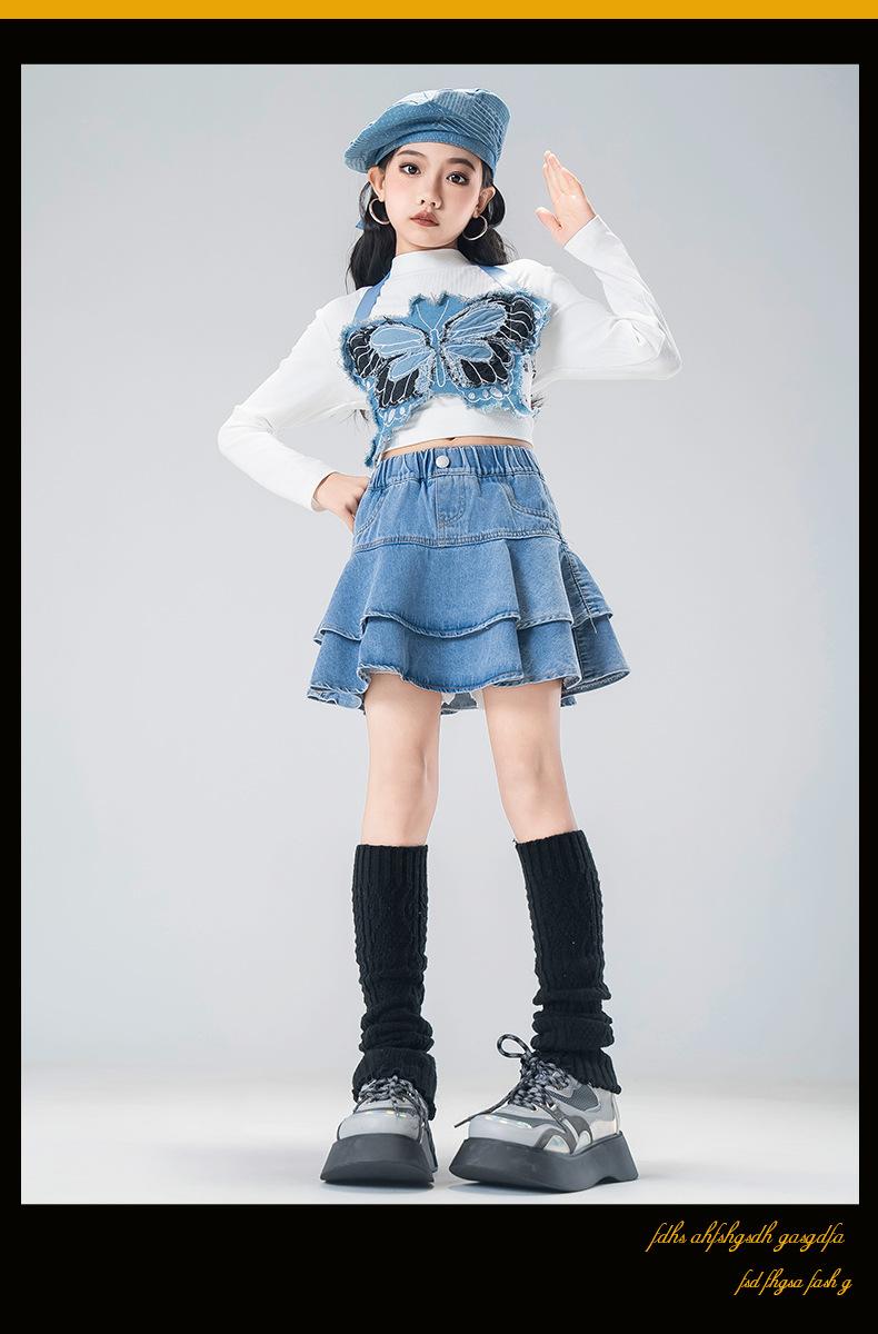 Disfraz de baile de jazz para niñas, disfraz de actuación infantil, disfraz de pasarela de hip hop para niñas, disfraz de mariposa vaquera para actuación grupal femenina.