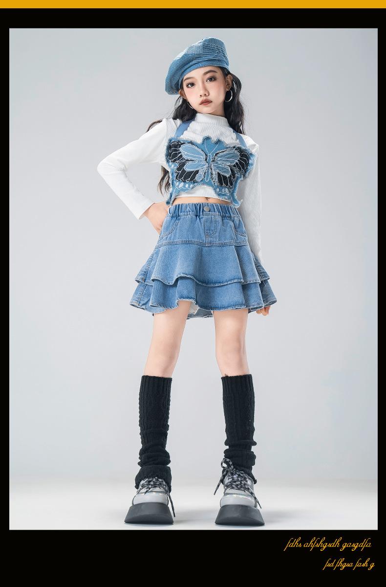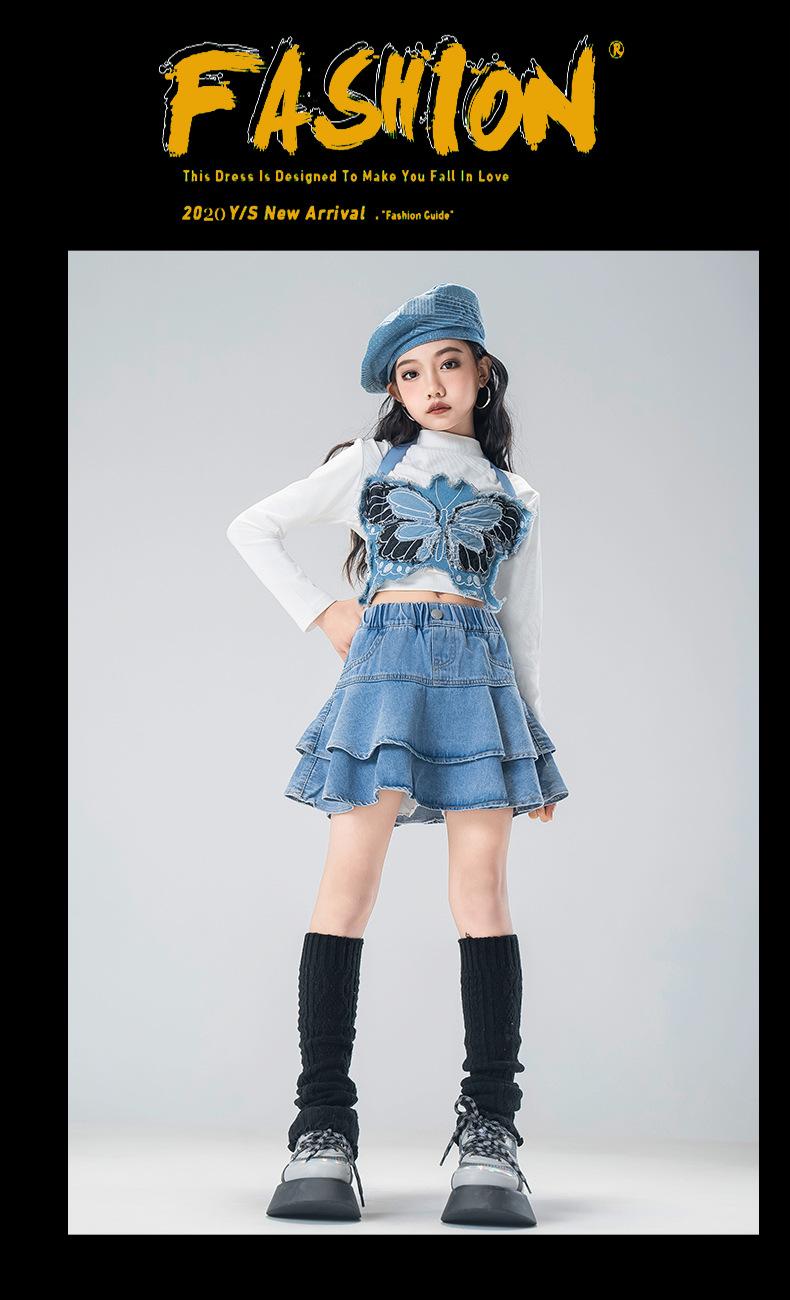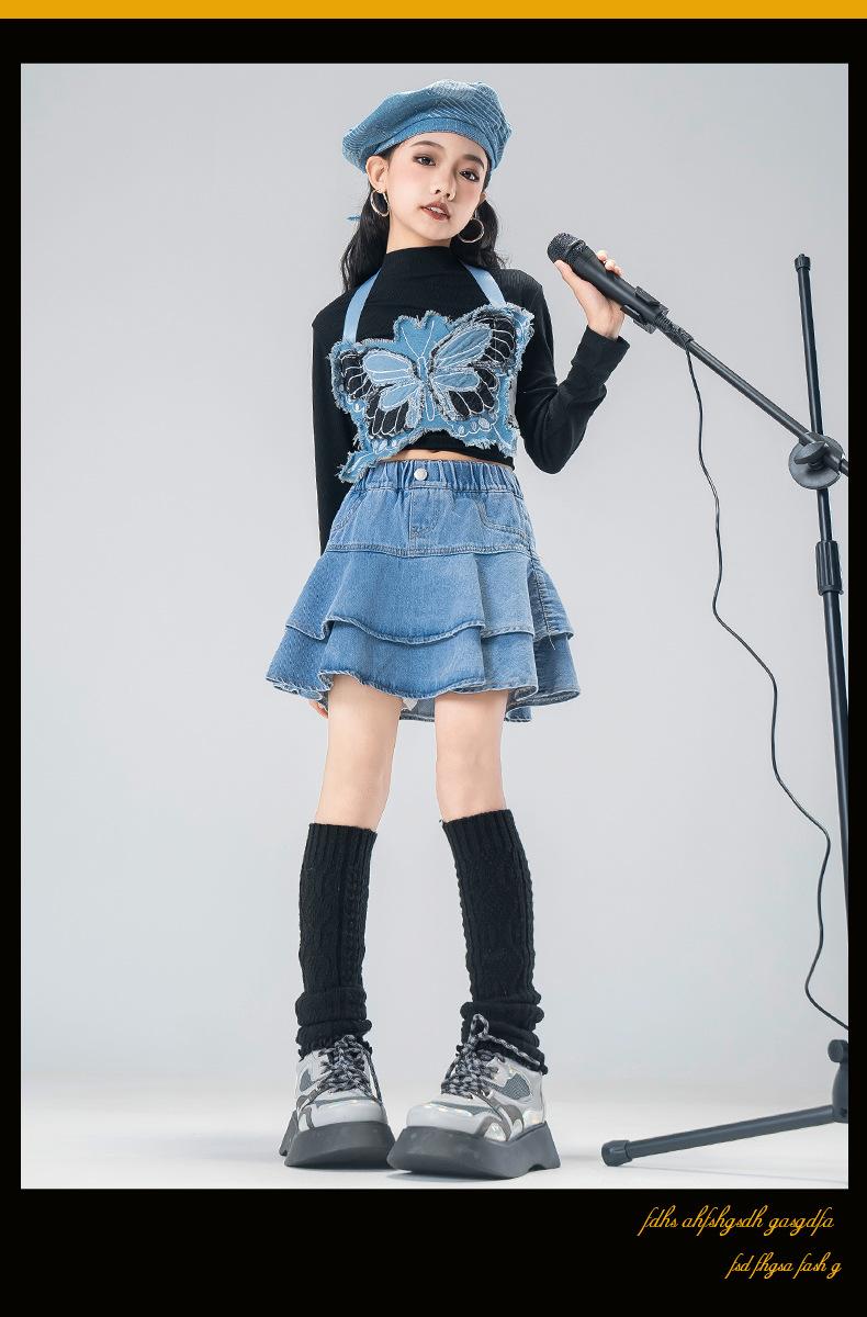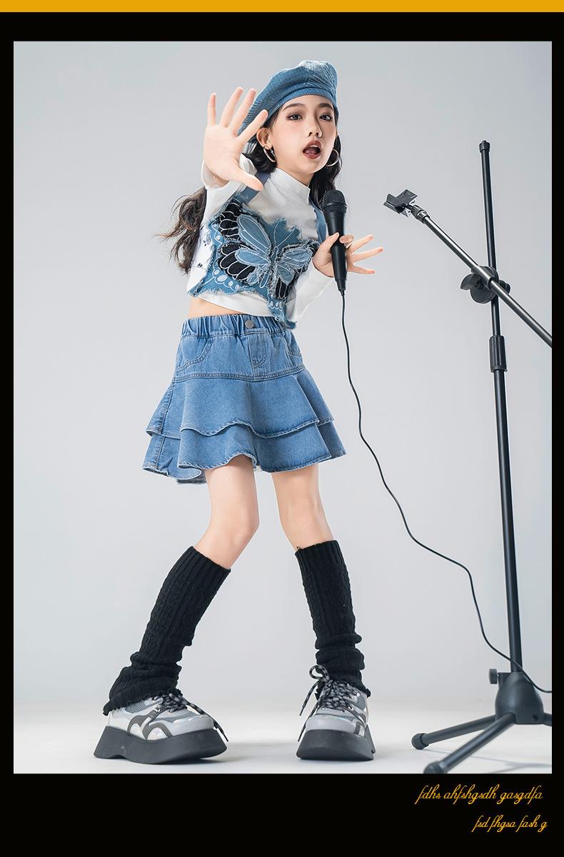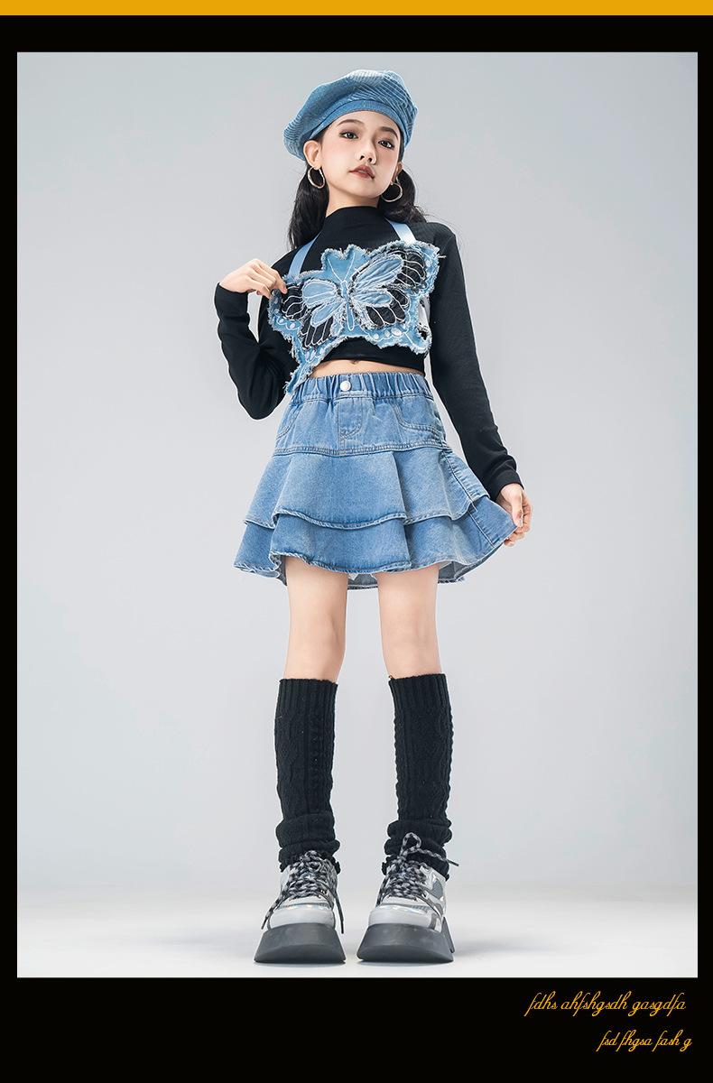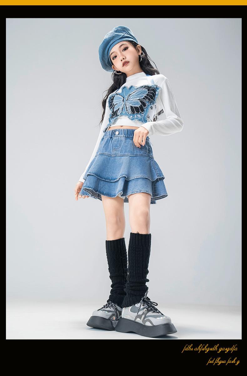 Disfraz de baile de jazz para niñas, disfraz de actuación infantil, disfraz de pasarela de hip hop para niñas, disfraz de mariposa vaquera para actuación grupal femenina.
