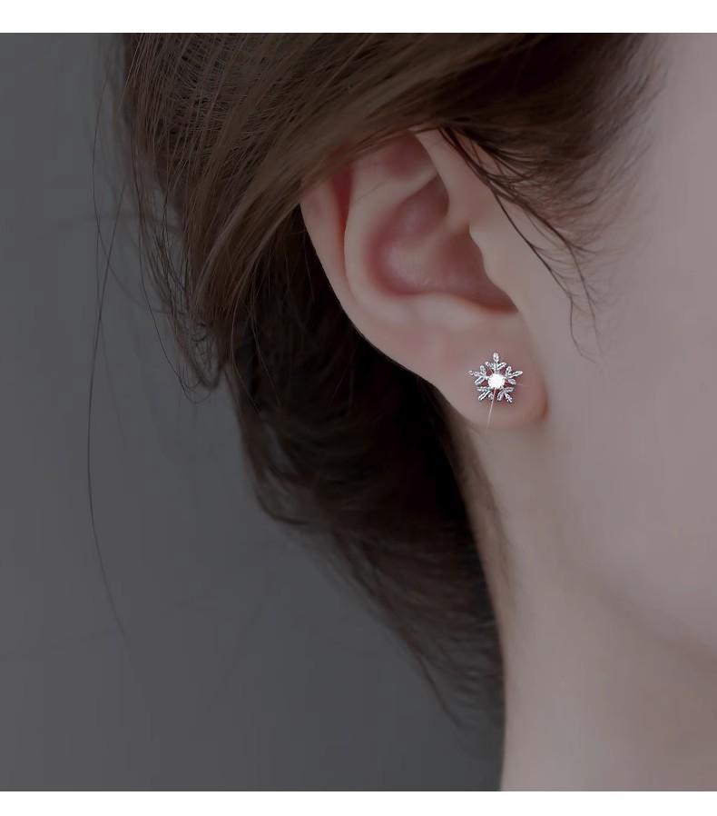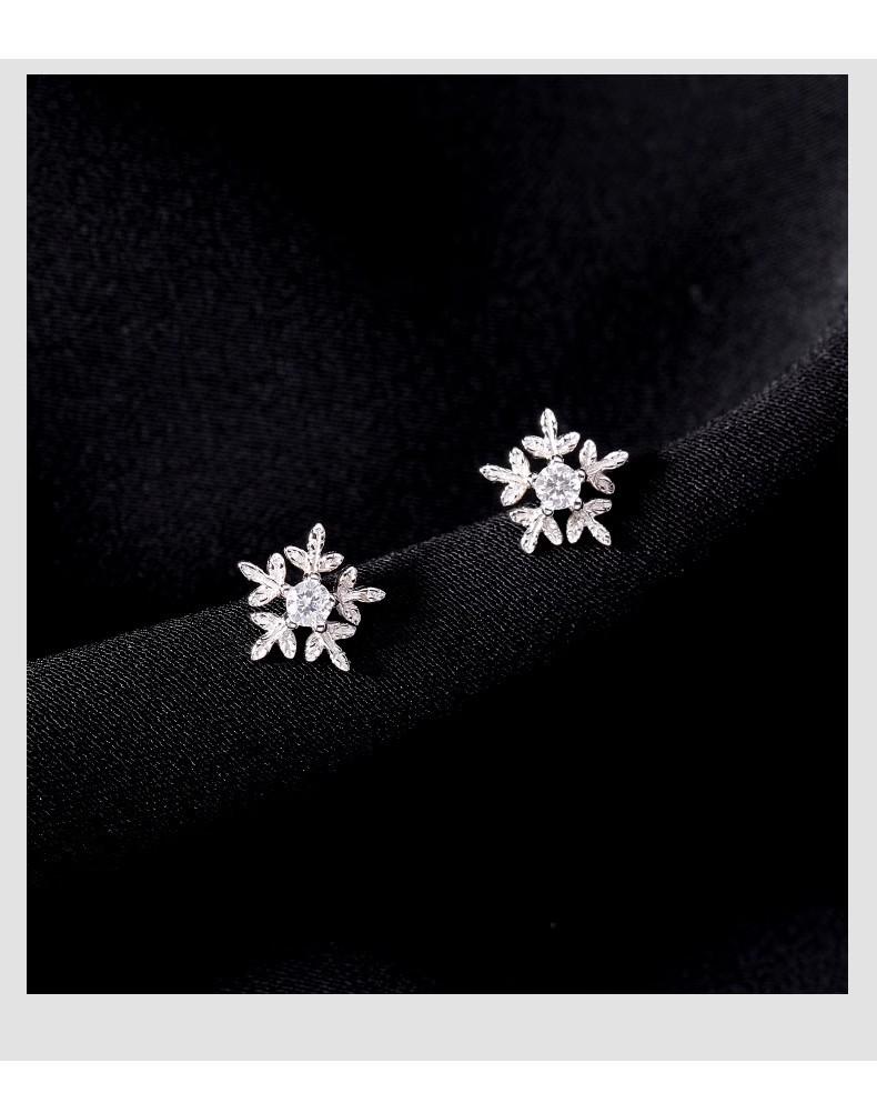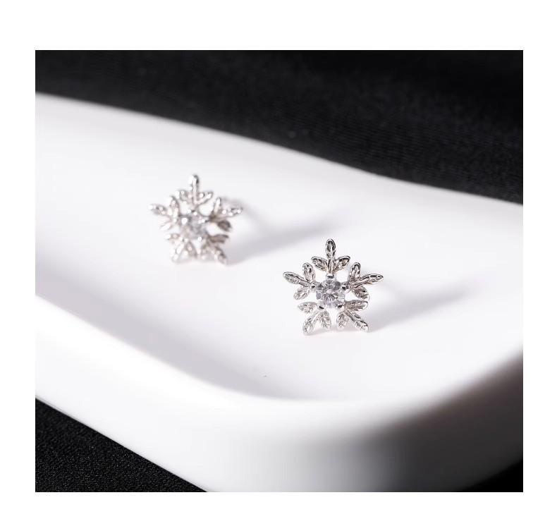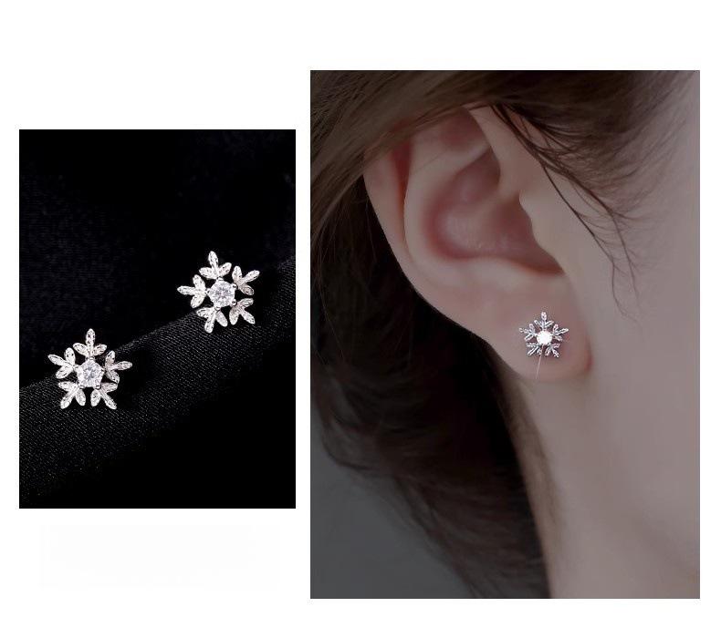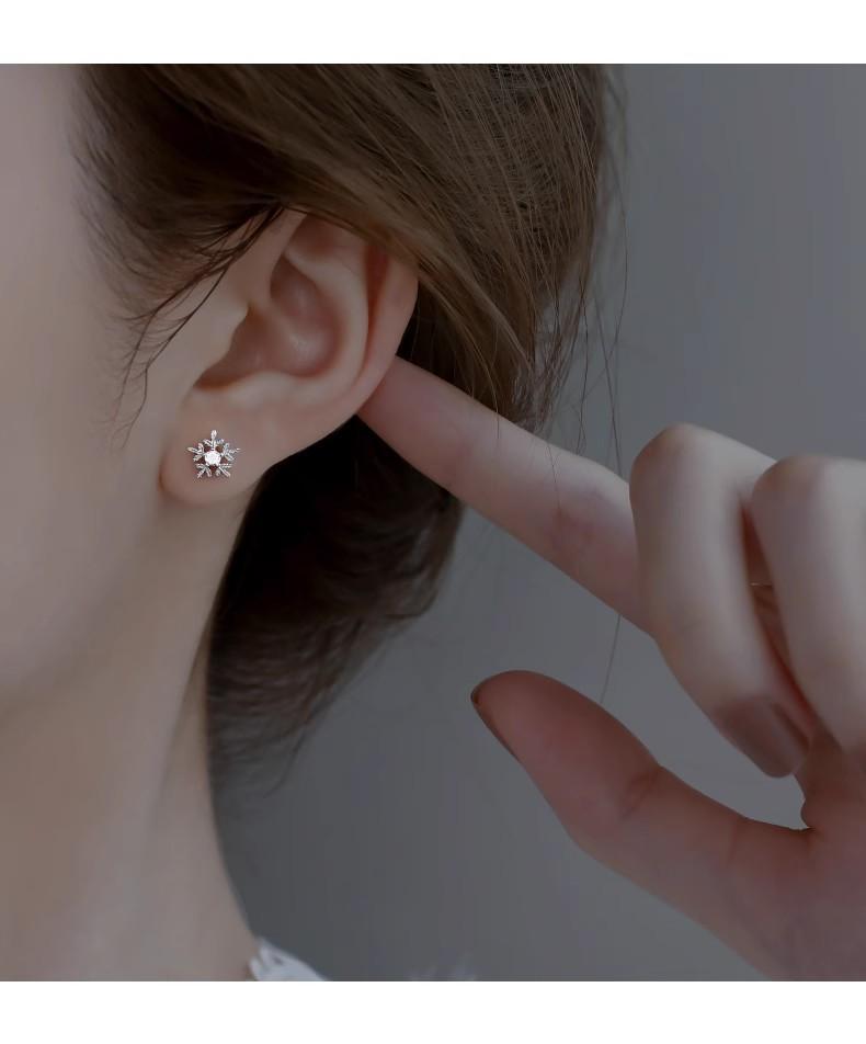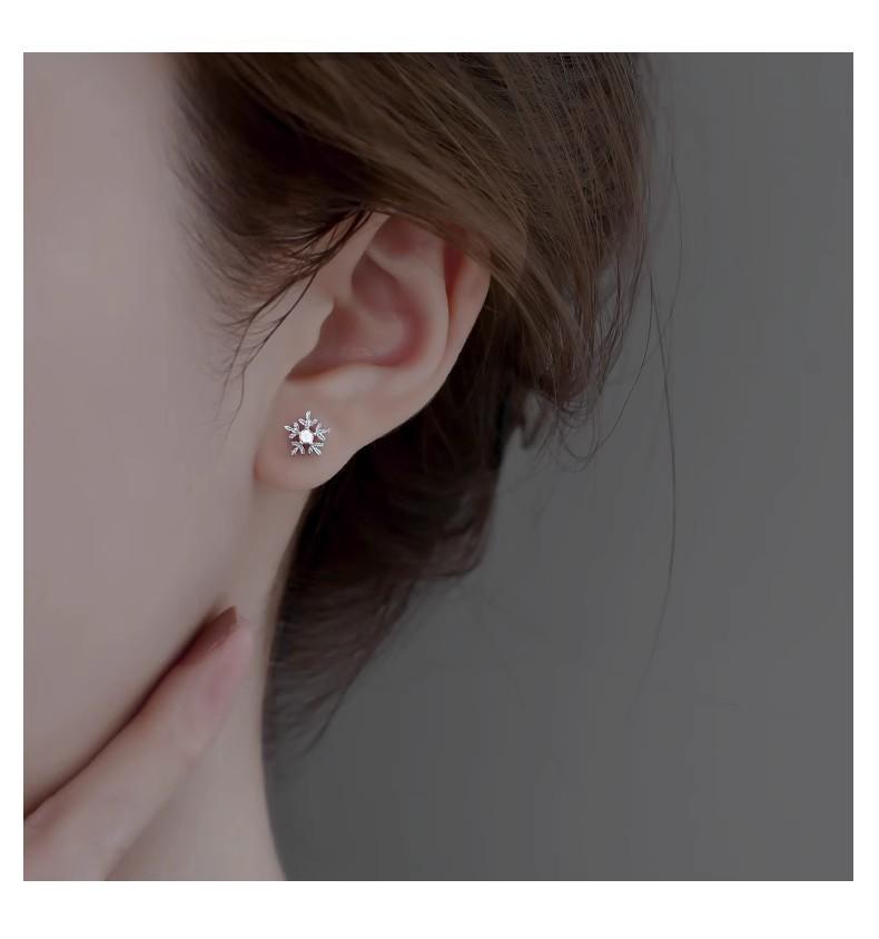Pendientes de copo de nieve con aguja de plata 925 y diamantes, estilo coreano Mori, para estudiantes, con personalidad sencilla, mini pendientes elegantes.
