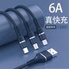 Cable de datos de uno a tres para Apple Android multi-cabezal tipo C 6a carga súper rápida línea de carga tres en uno al por mayor