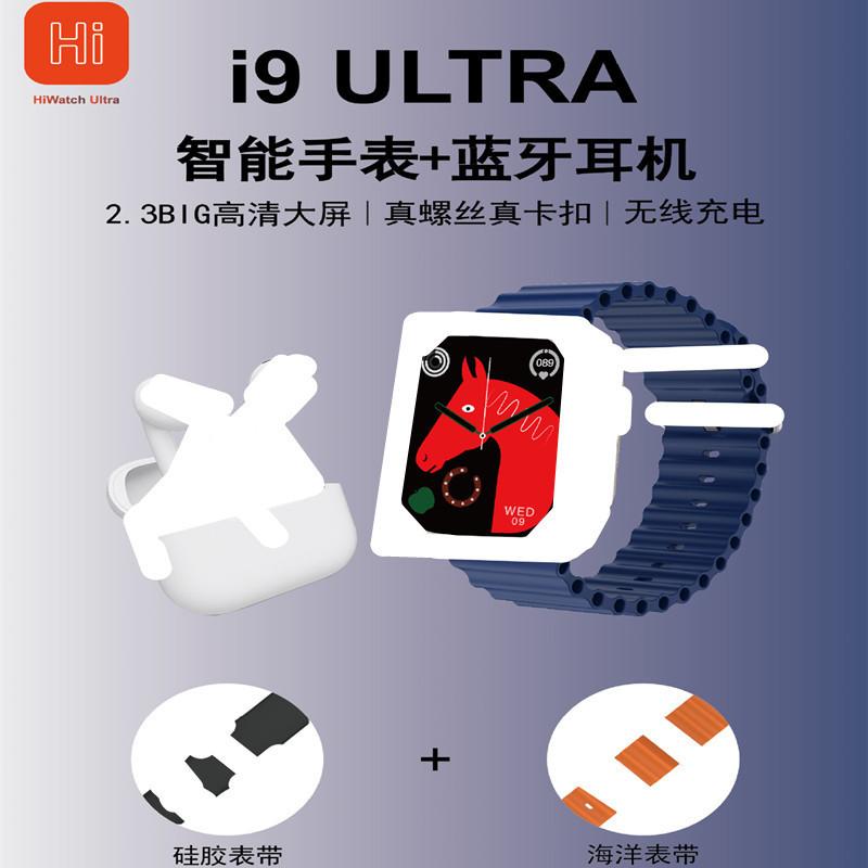 Reloj inteligente i9 Ultra con auriculares Bluetooth 2 en 1, correa doble, pulsera de monitoreo de salud, llamada Bluetooth