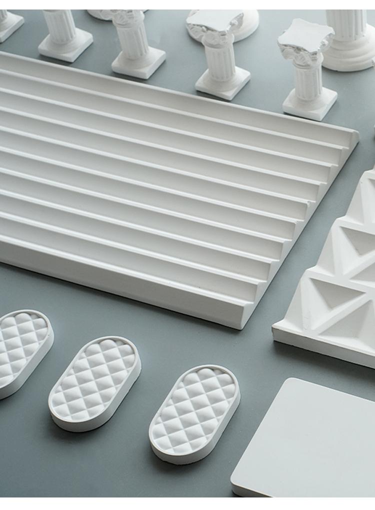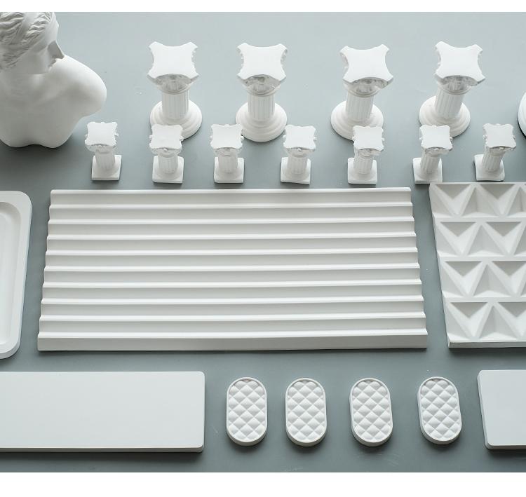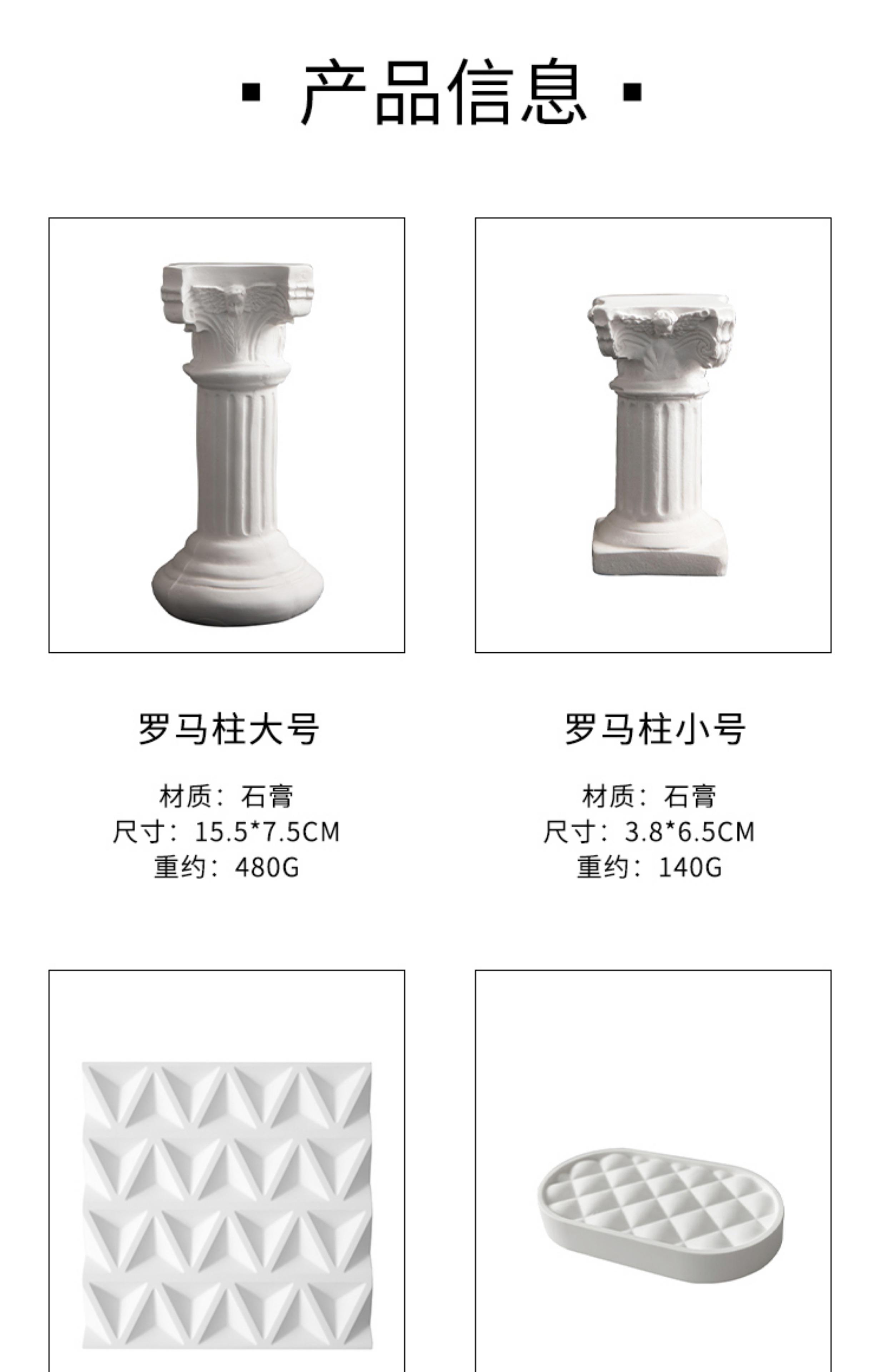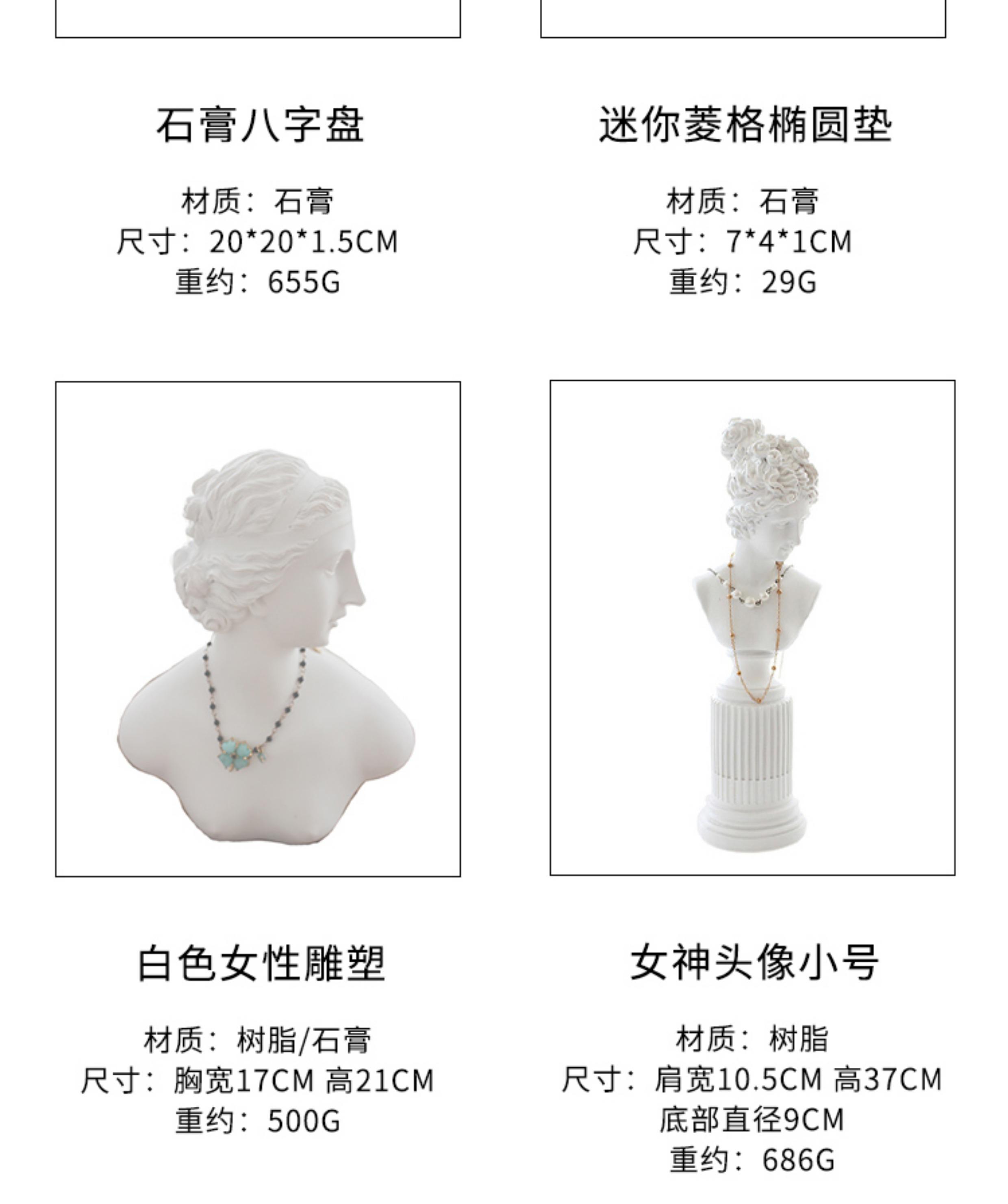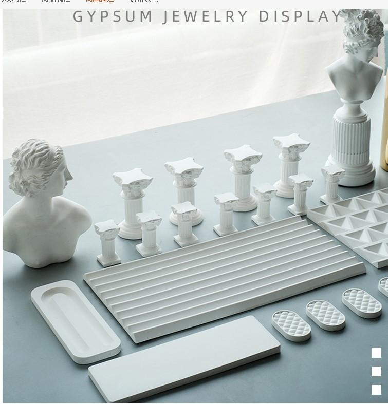 Expositor de joyas con forma de columna romana europea, bandeja de yeso blanco, accesorios de almacenamiento para mostrador de joyas.