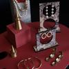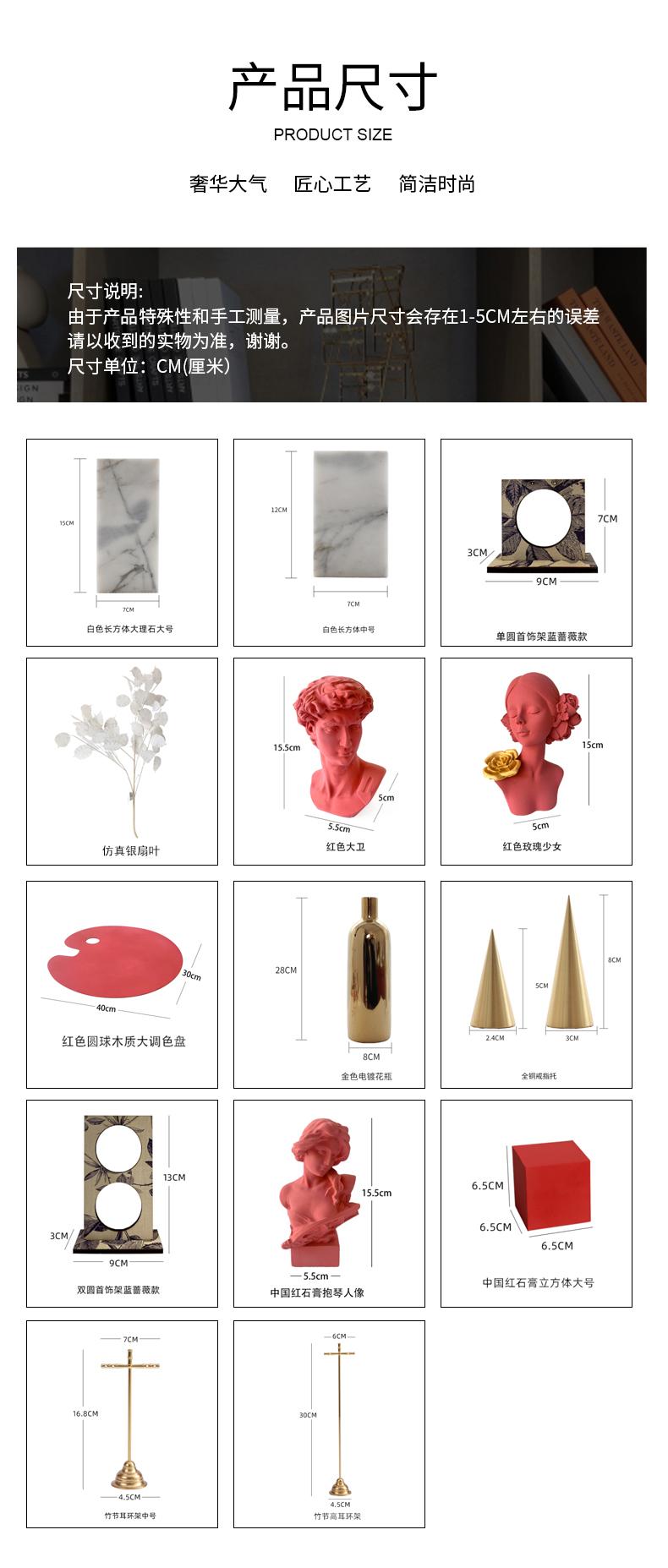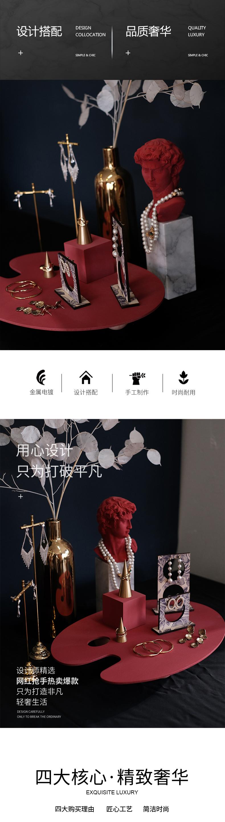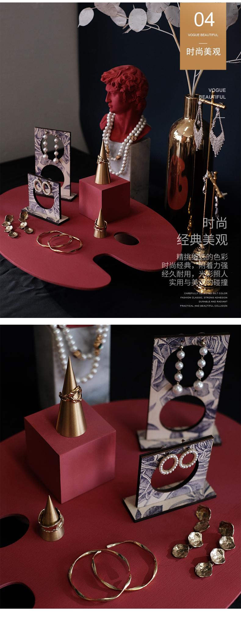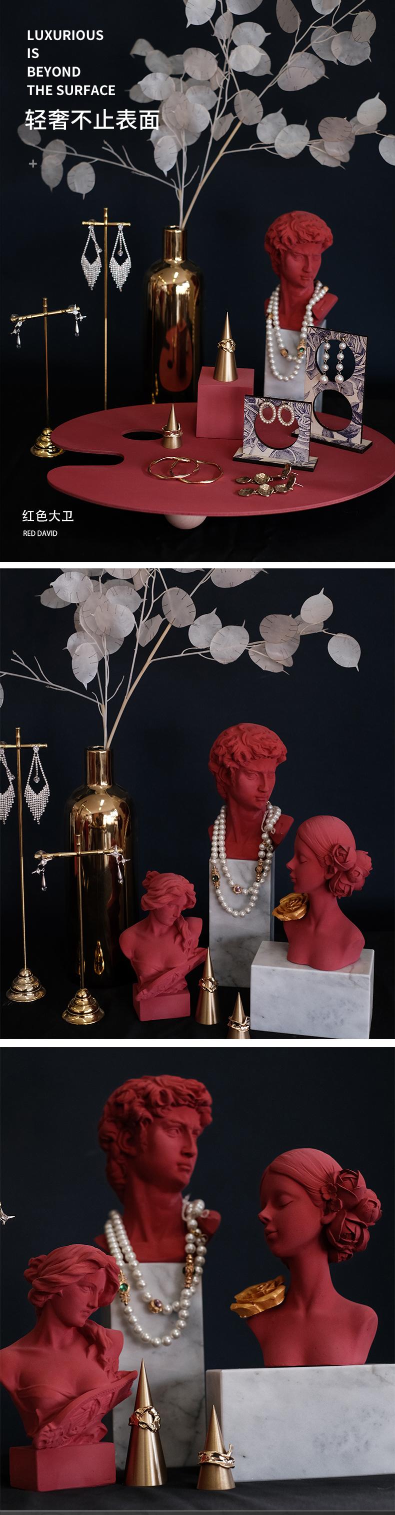 Exhibidor de Joyería de Yeso Rojo Escultura Adornos Soporte para Aretes Soporte para Anillos de Cobre Exhibidor de Joyería Accesorios para Sesión de Fotos