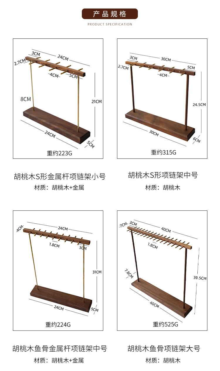 Estante de exhibición de collares, tienda de accesorios de exhibición de joyas, estante de almacenamiento de joyas de pulsera colgante simple de alta gama de nogal creativo