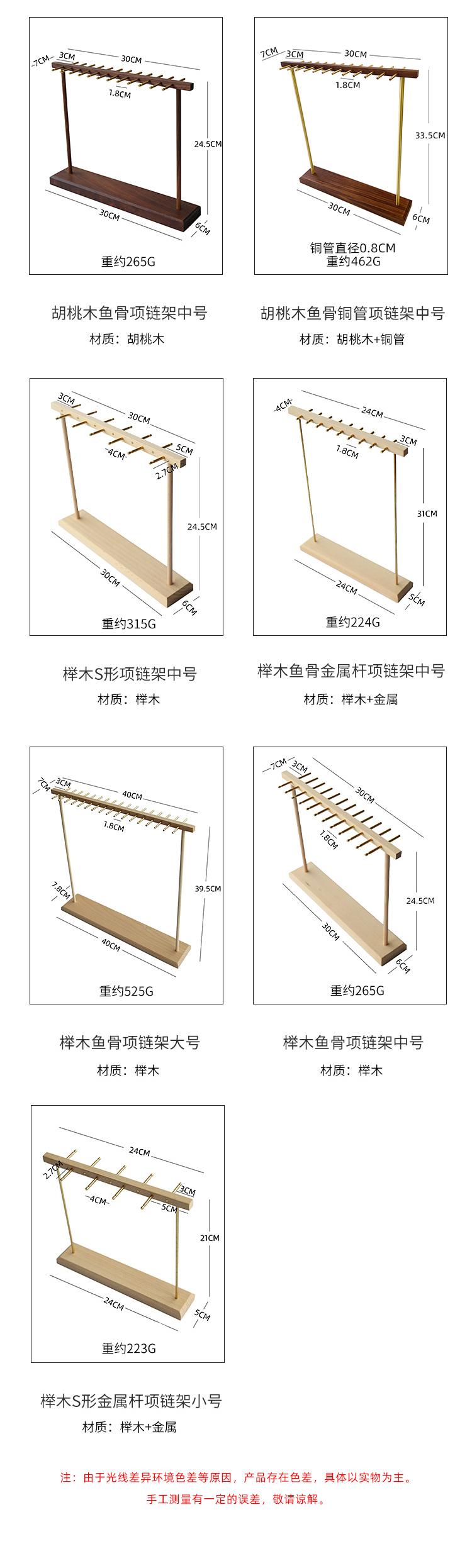 Walnut fish bone copper tube necklace rack medium, Beech fishbone necklace rack medium, Beech fishbone necklac...
