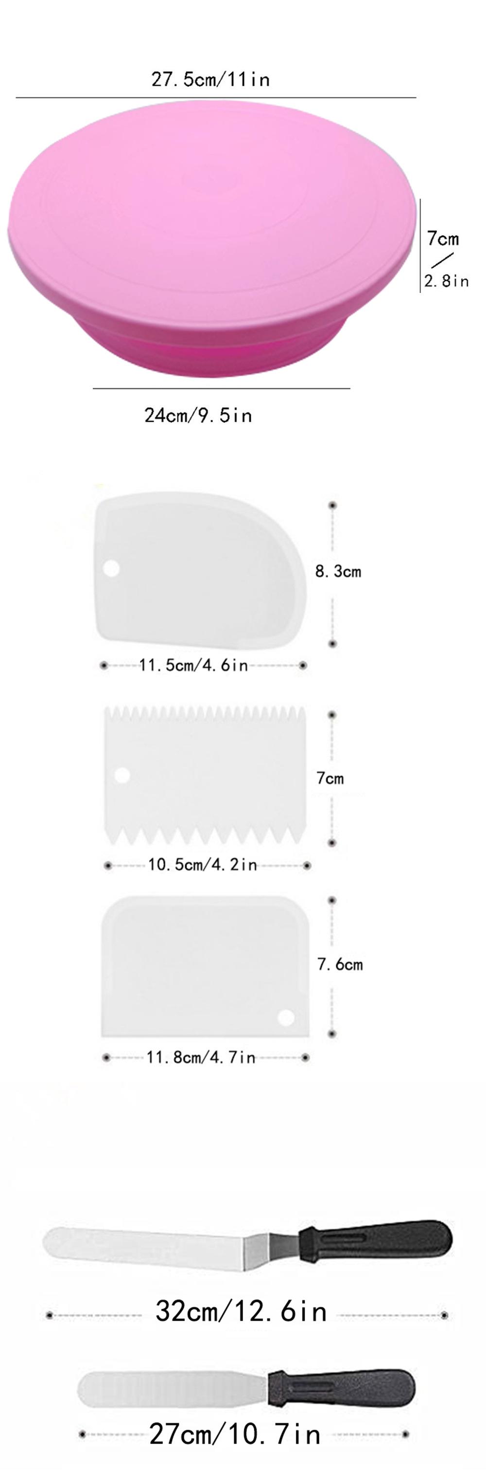 Lista de productos: plato giratorio rojo + espátula recta de 6 pulgadas + espátula curva de 8 pulgadas + juego de tres raspadores