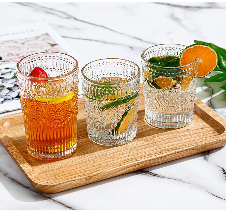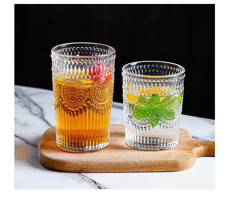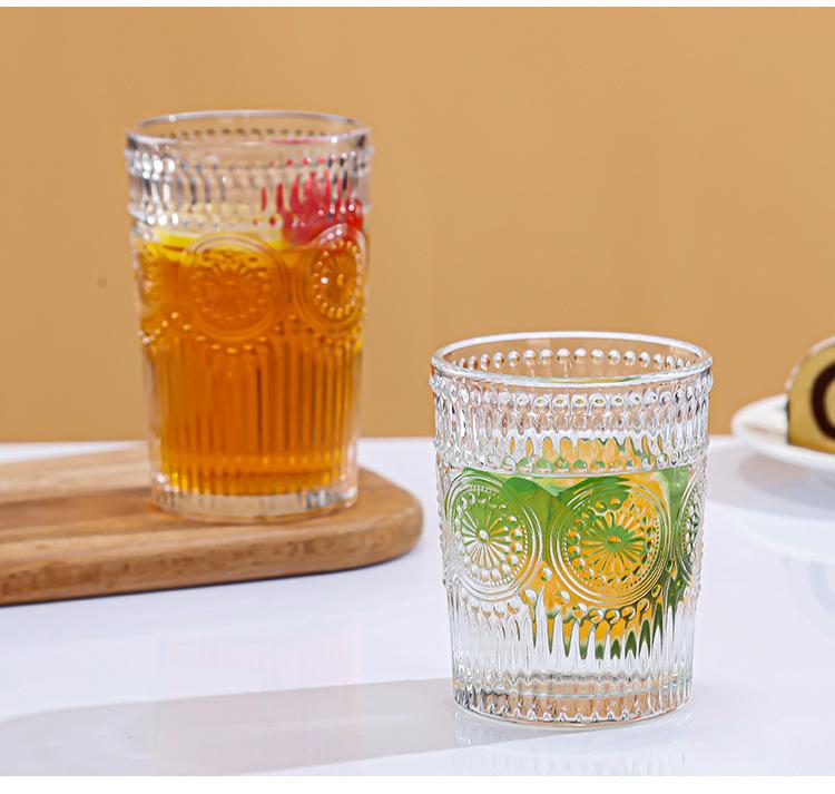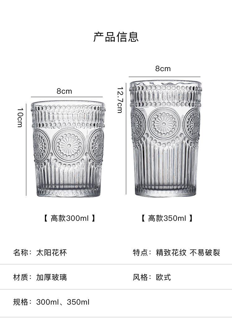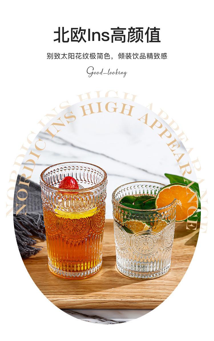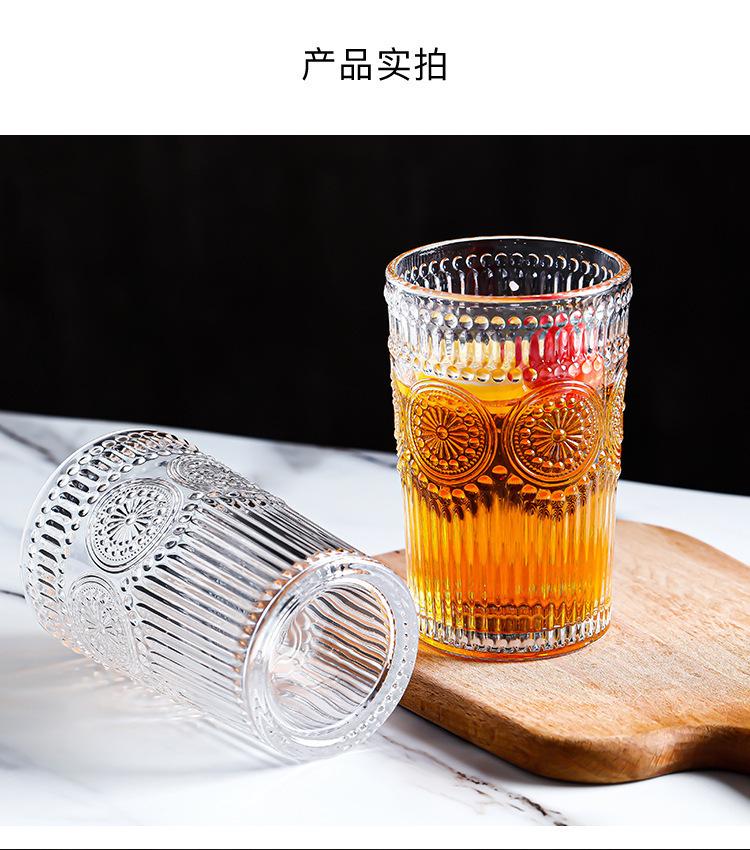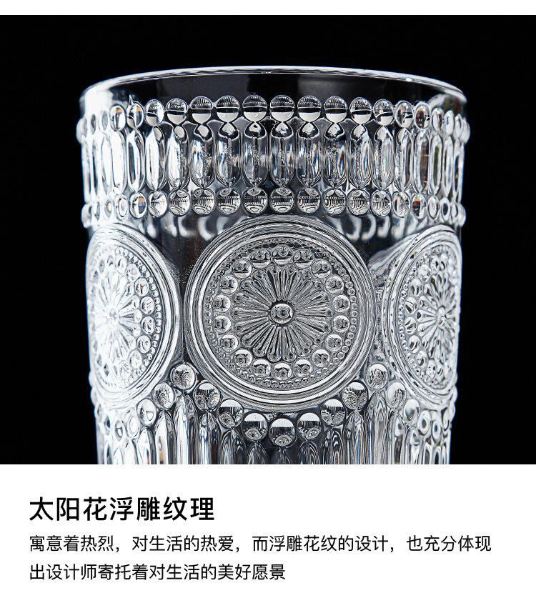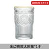 Taza de vidrio de girasol vintage con borde dorado en relieve, taza de café de vidrio de aspecto elegante, taza de regalo con mano, taza de regalo al por mayor