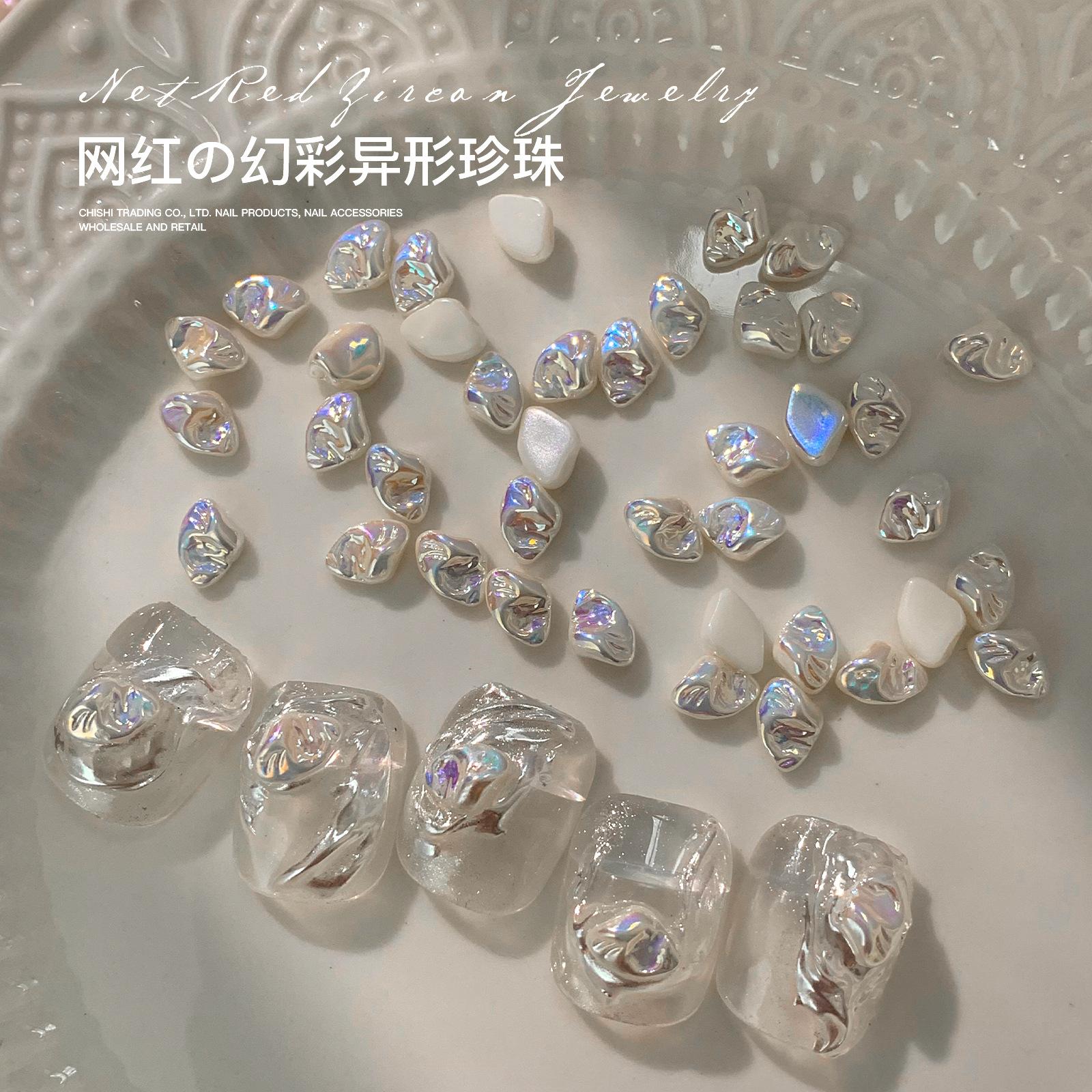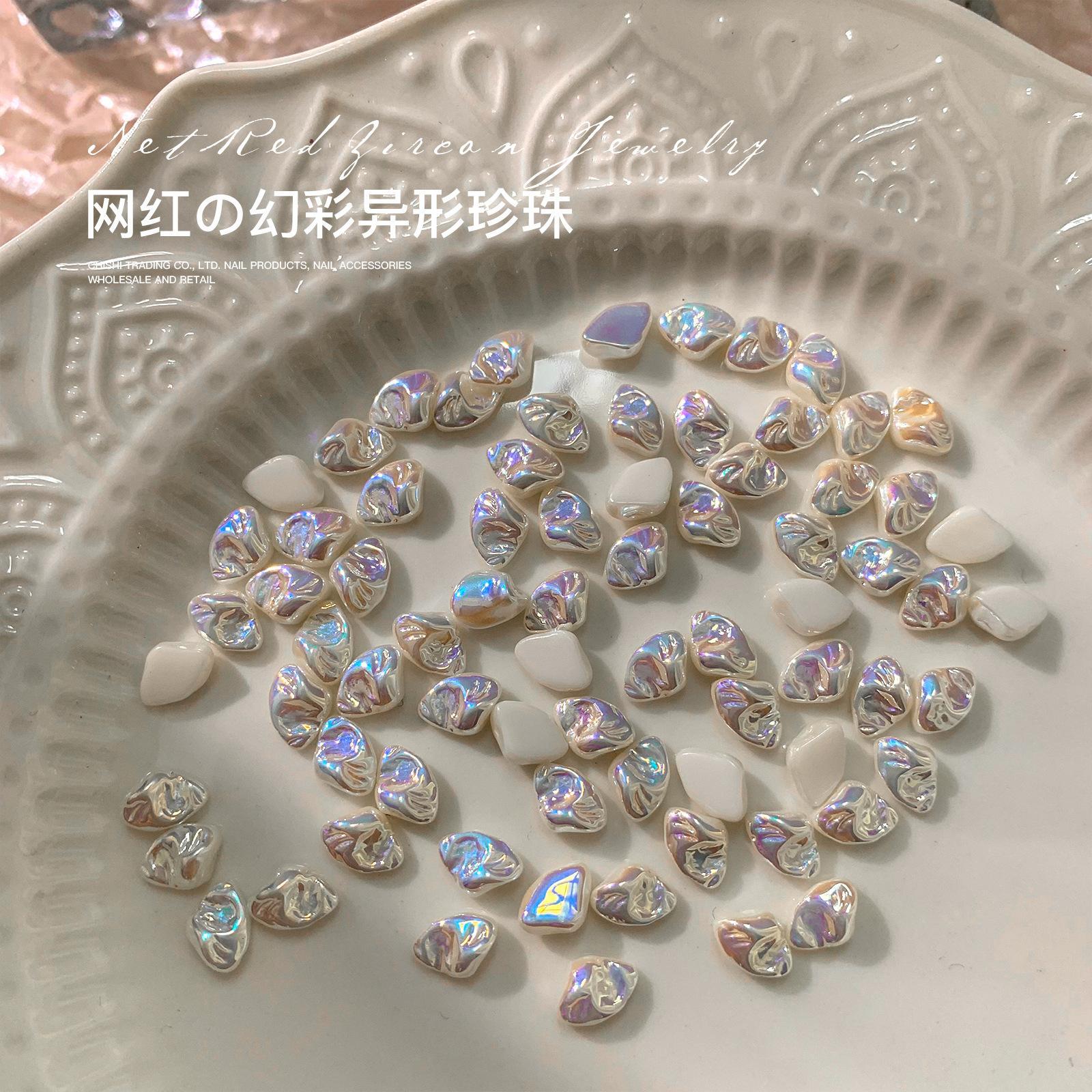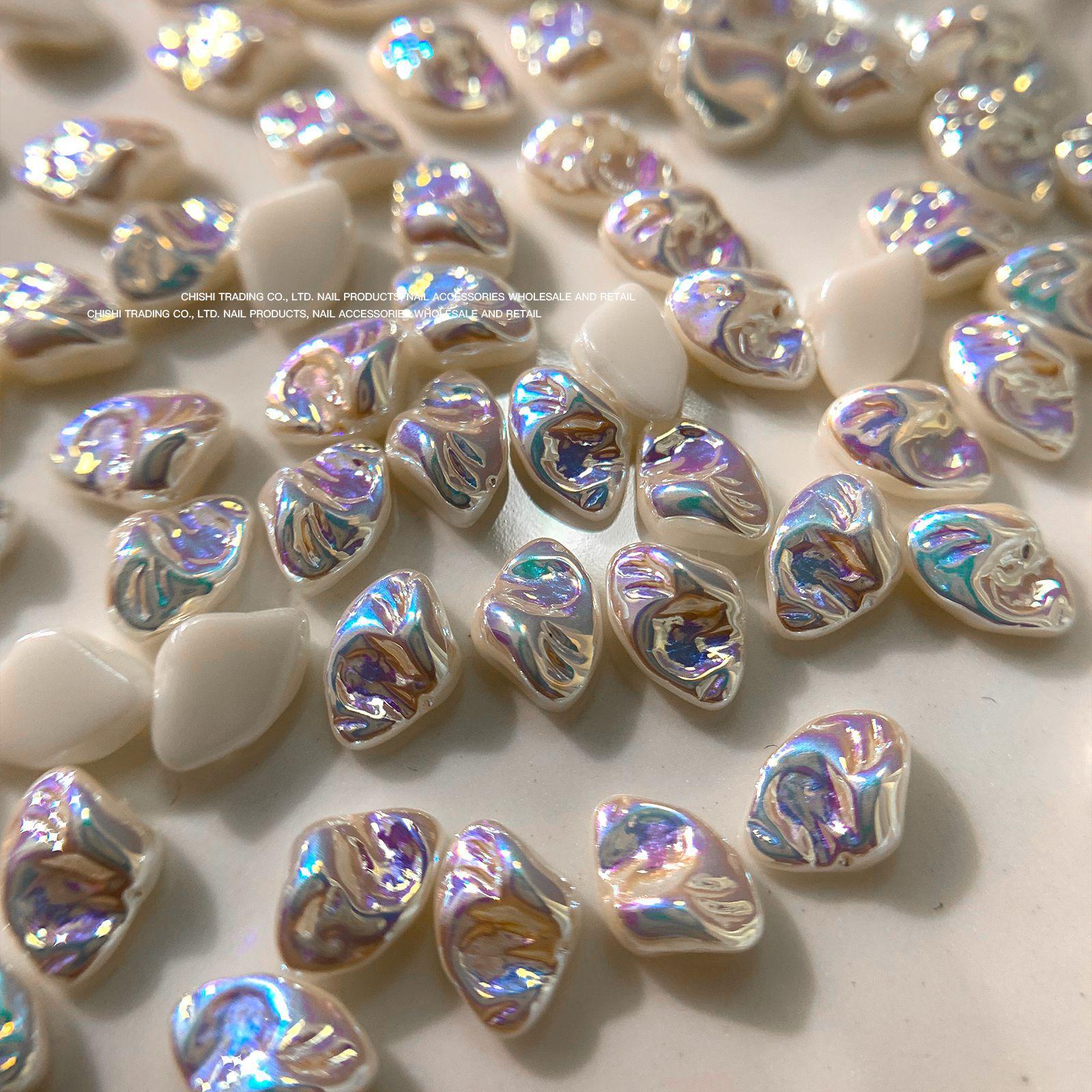 Joyas para uñas con forma barroca de perlas de colores, imitación de concha, decoraciones para uñas planas de perlas brillantes, perlas al por mayor