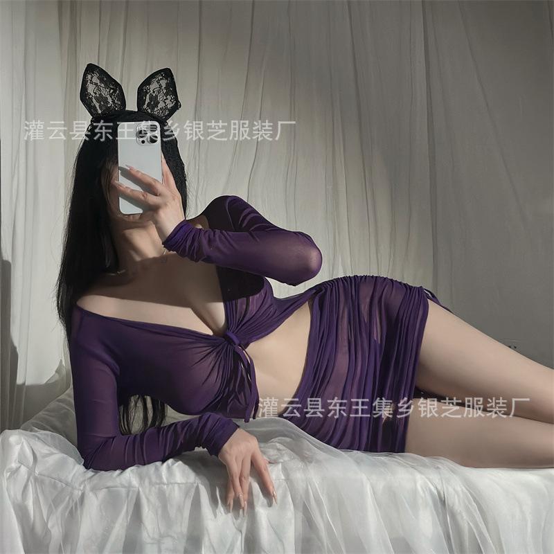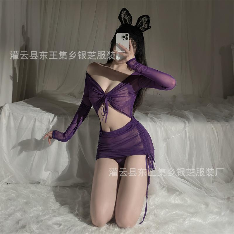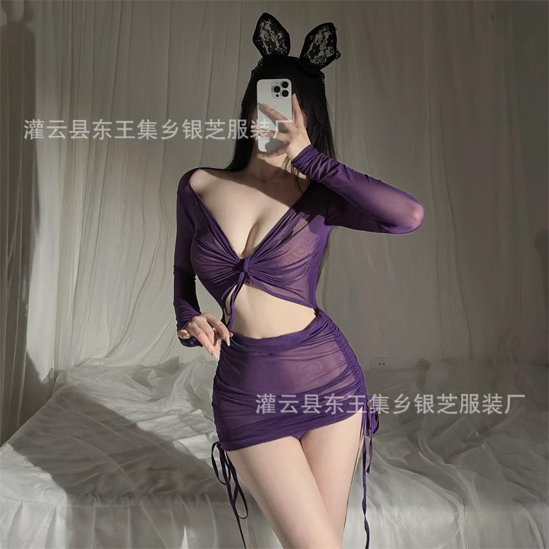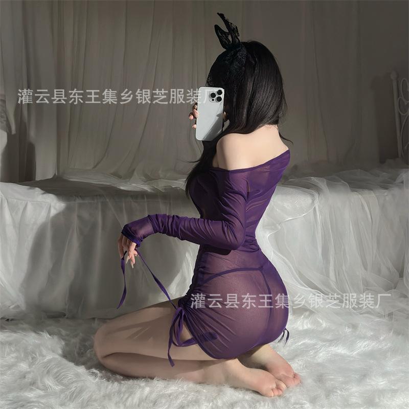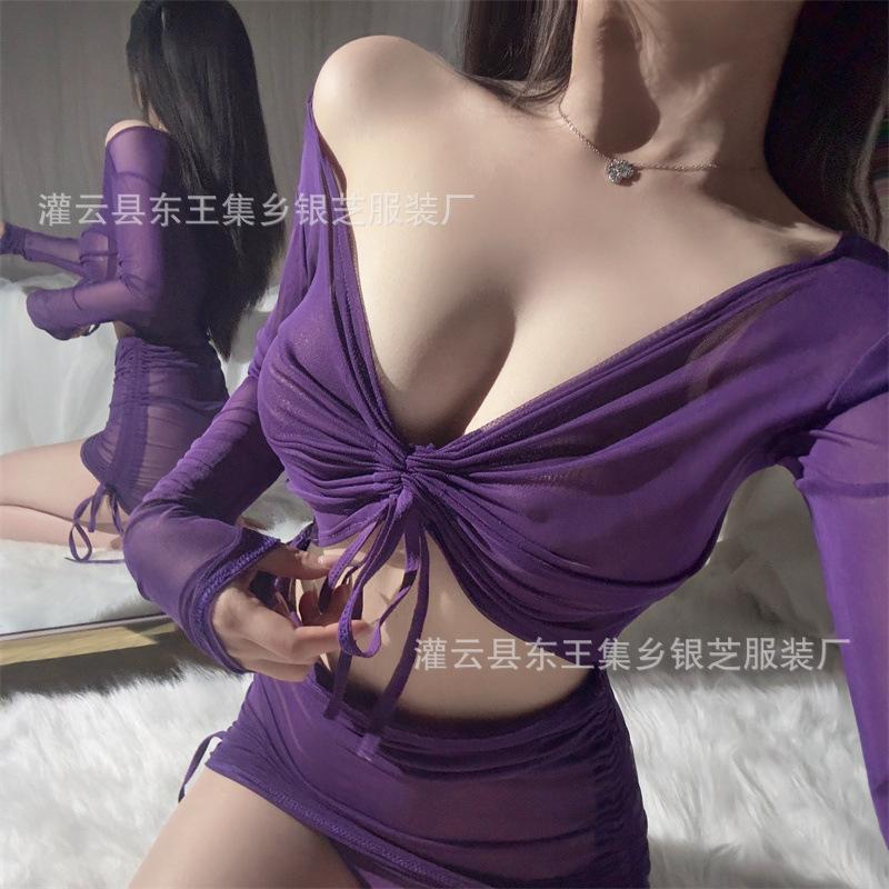 Ropa interior sexy para mujer, perspectiva de manga larga, vestido de cadera, pasión, sexy, uniforme, tentación, conjunto de pijama