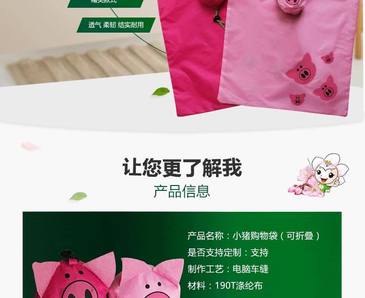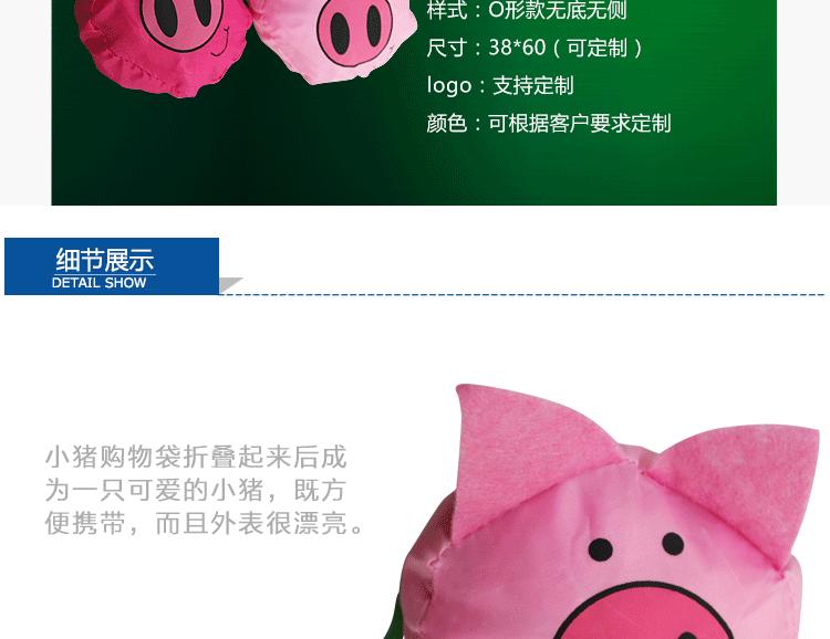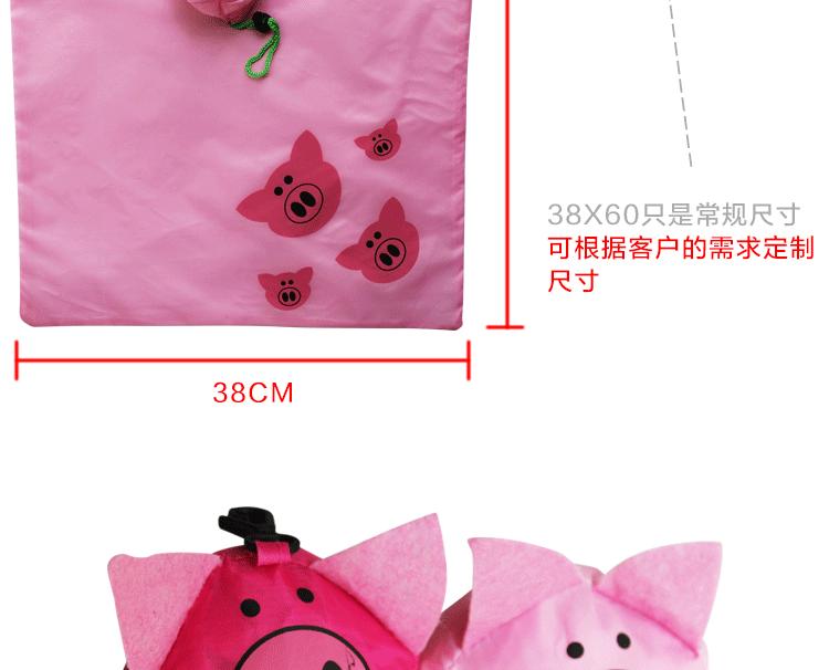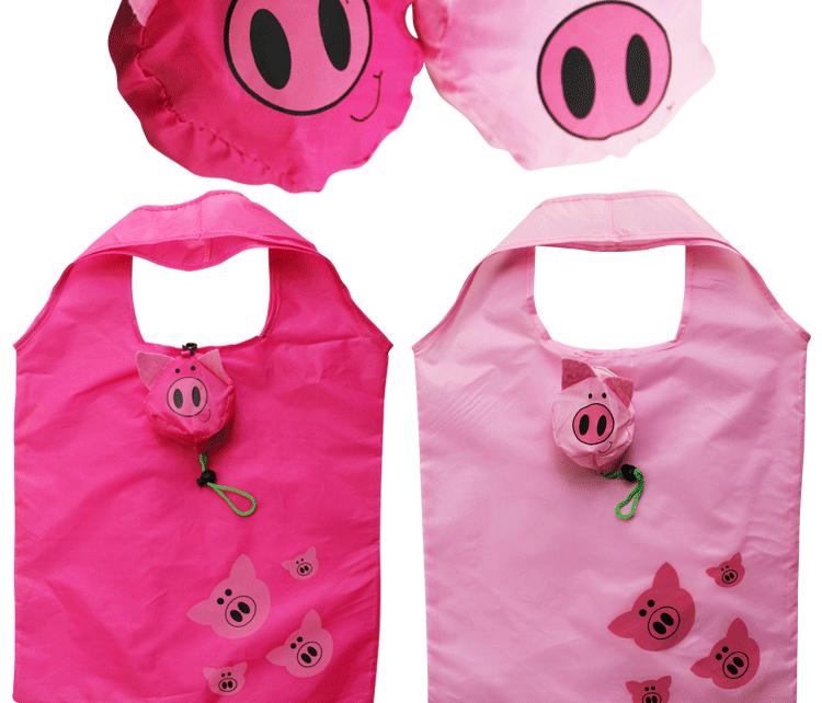 Bolsa de protección ambiental con diseño de cerdito rosa y animal, portátil, de tela de poliéster, para compras, publicidad, logotipo imprimible