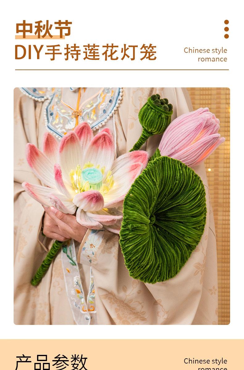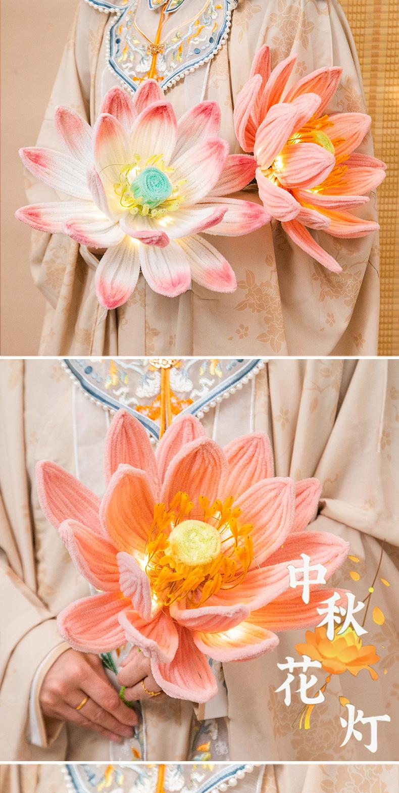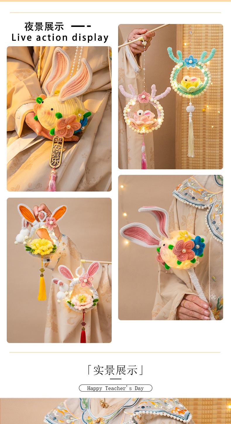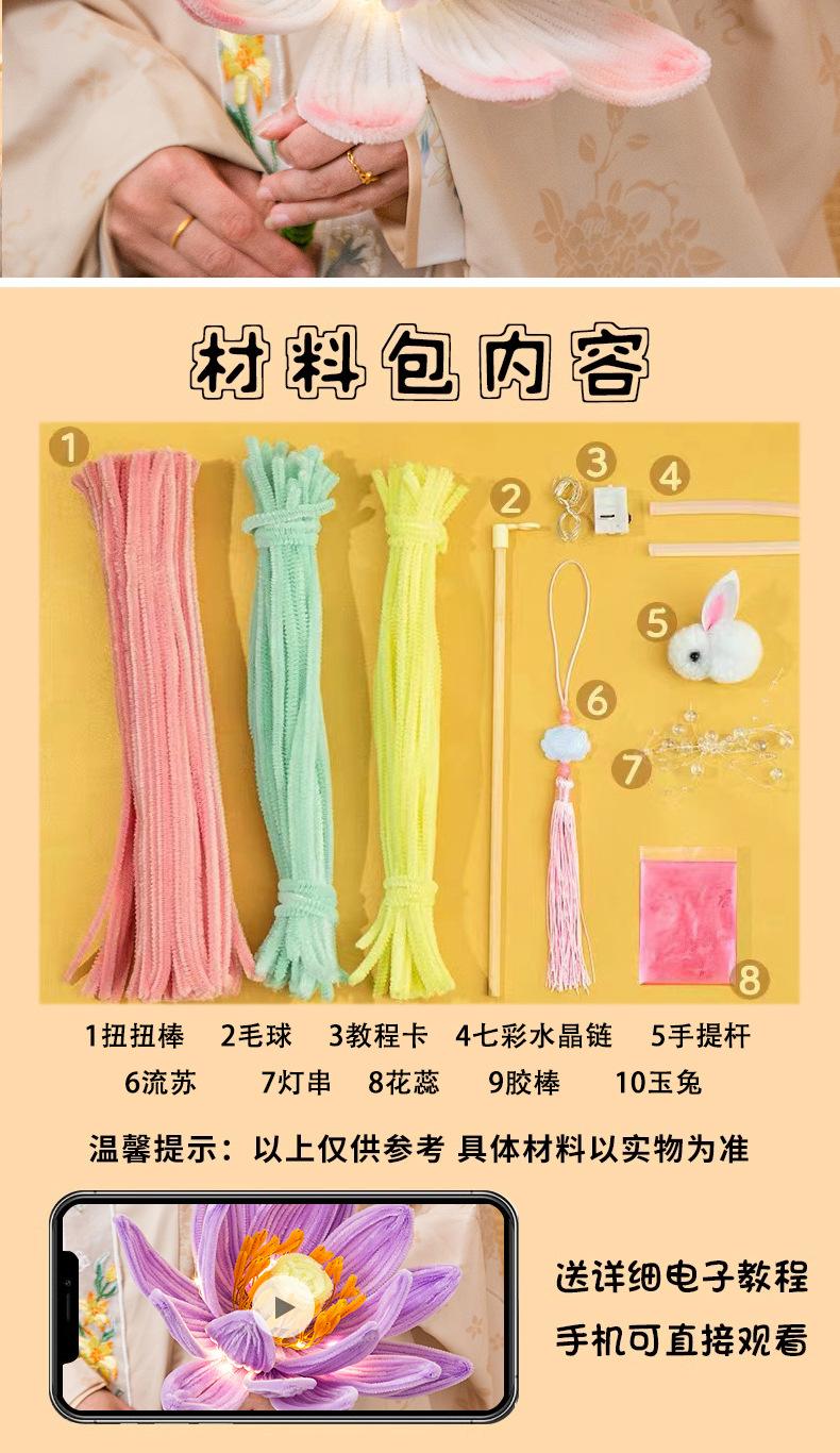 Festival del Medio Otoño Linterna Palo Giratorio Linterna de Loto Paquete de Materiales DIY Hecho a Mano Mochila Linterna de Conejo Estilo Antiguo Linterna de Loto Luminosa