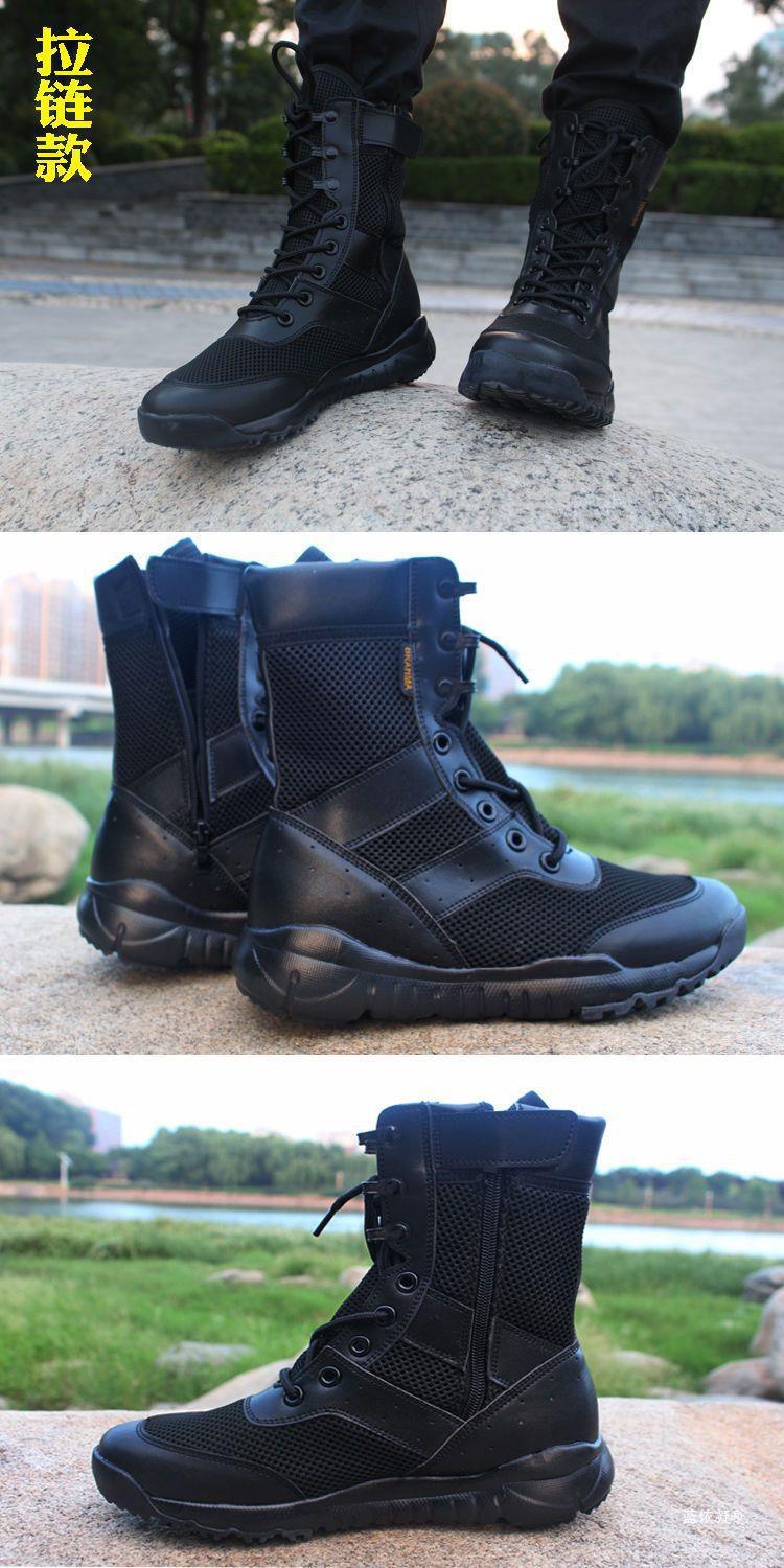 Botas de seguridad de primavera y verano para hombre, botas de entrenamiento de combate Cqb521 finas, botas de malla táctica con cremallera, botas de entrenamiento militar de seguridad transpirables.