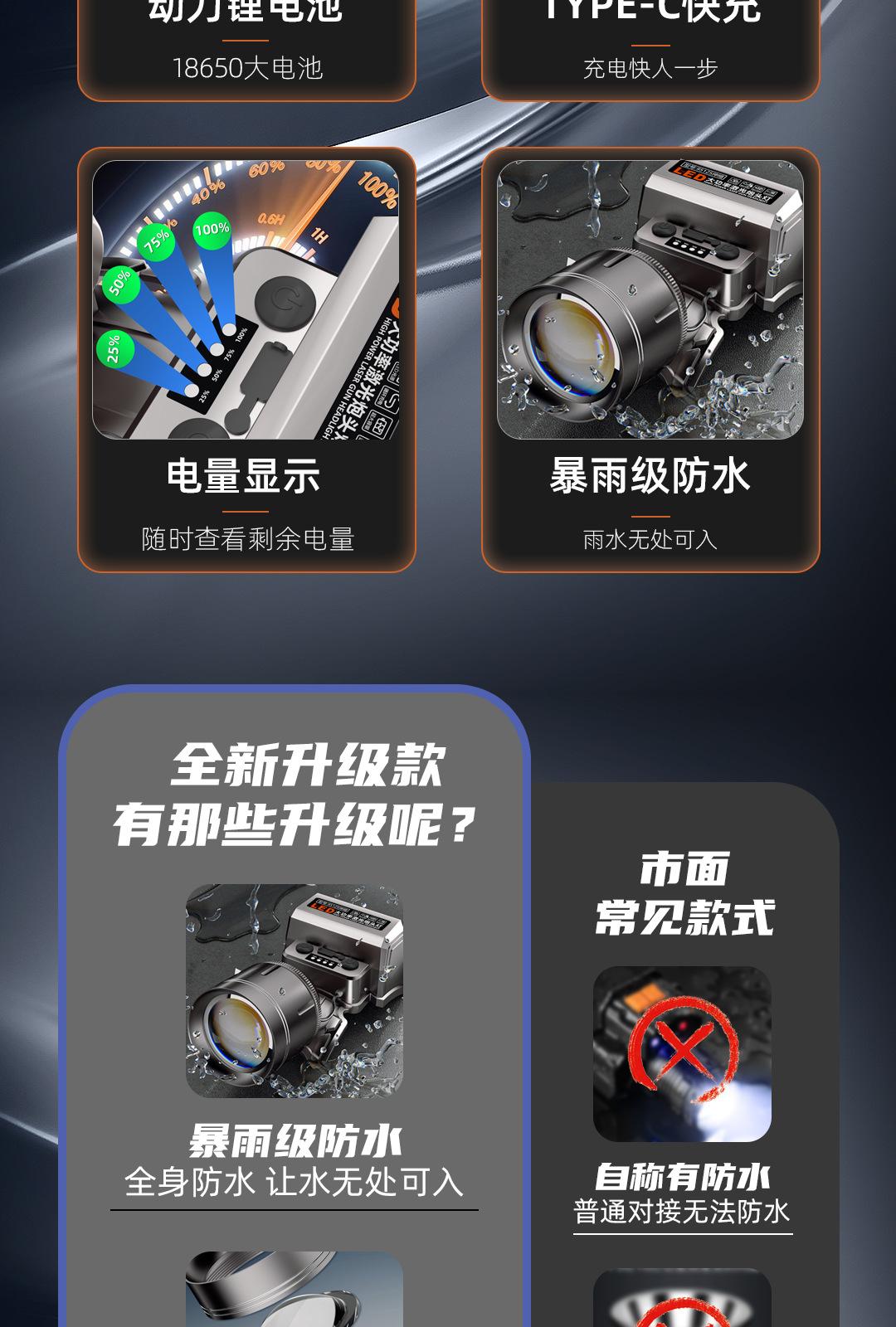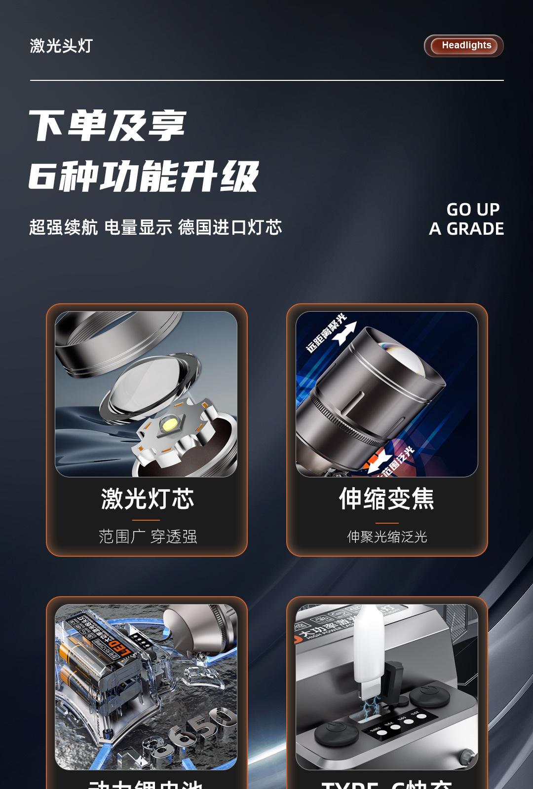 Compra Faro de inducción para exteriores, venta al por mayor transfronteriza, láser telescópico, zoom, carga, faro de inducción, impermeable, brillante. al por mayor en Joom.pro