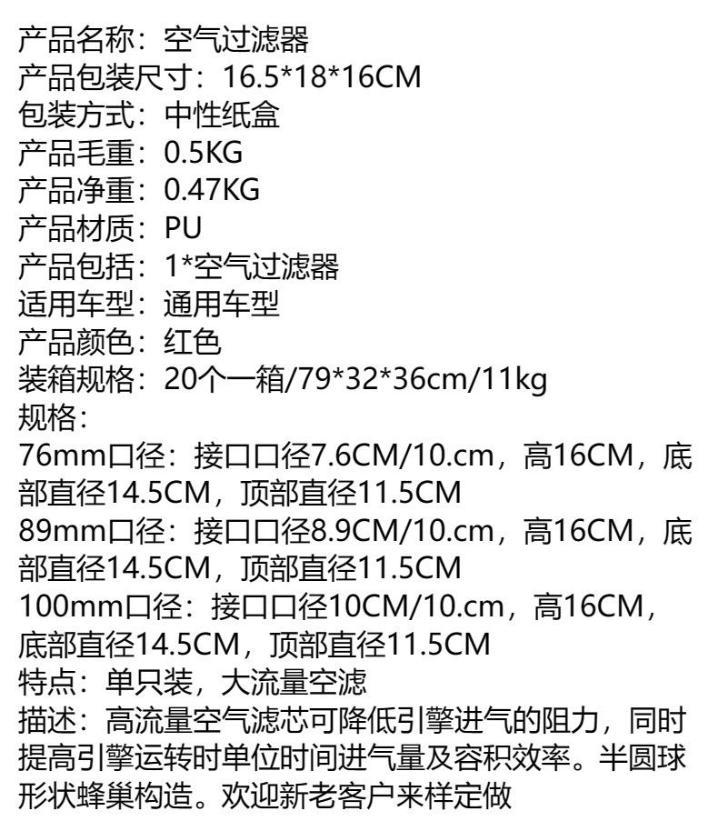 Ventas Directas de Fábrica Modificación de Coche Filtro de Aire Cabeza de Hongo Filtro de Aire de Alto Rendimiento