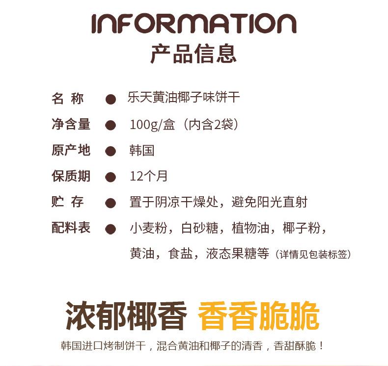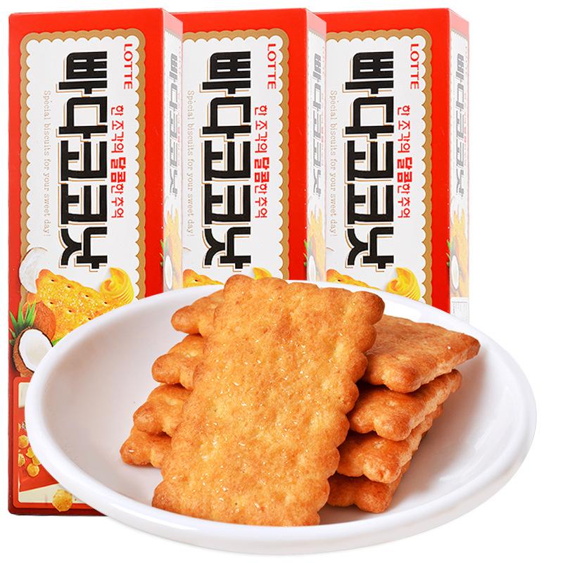 Galletas Crujientes Sabor Mantequilla Coco Lotte Importadas de Corea del Sur 100g Pasteles de Desayuno Snacks