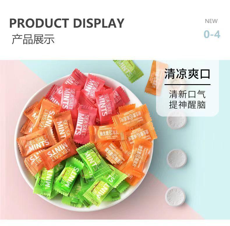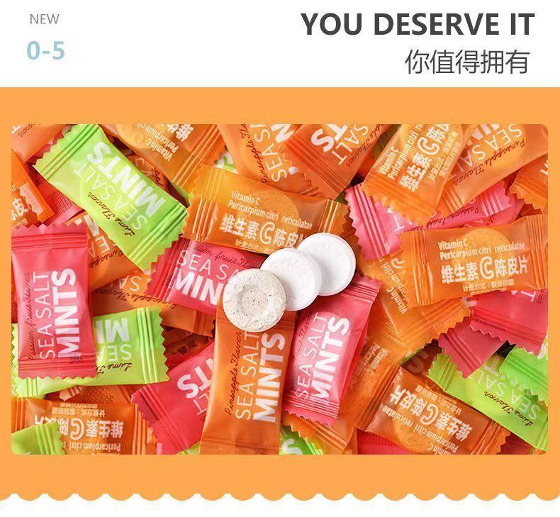 Aliento rojo neto, azúcar fresco, vitamina C, cáscara de mandarina, azúcar, sal marina, maracuyá, caramelos de menta sin azúcar, venta al por mayor, mixtos