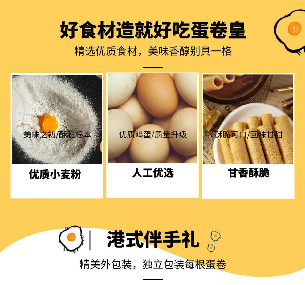 Aperitivos de rollo de huevo al estilo de Hong Kong, bocadillos saludables, bocadillos rojos netos, rollo de huevo, empaque independiente, regalo de mano, rollo de huevo rey, venta al por mayor