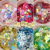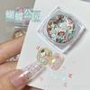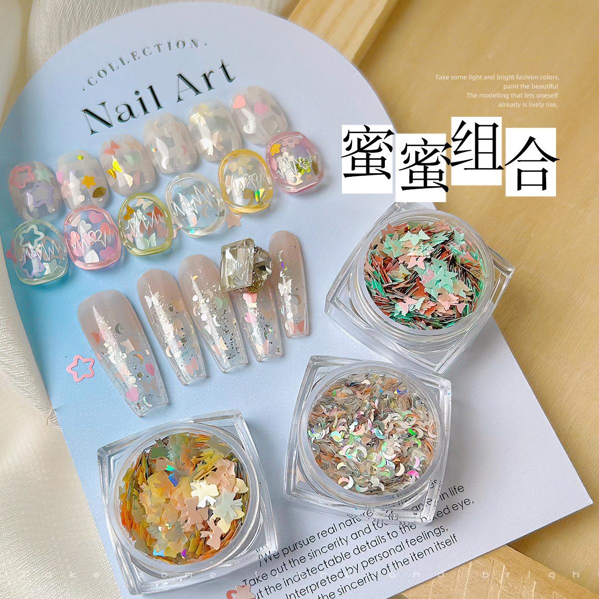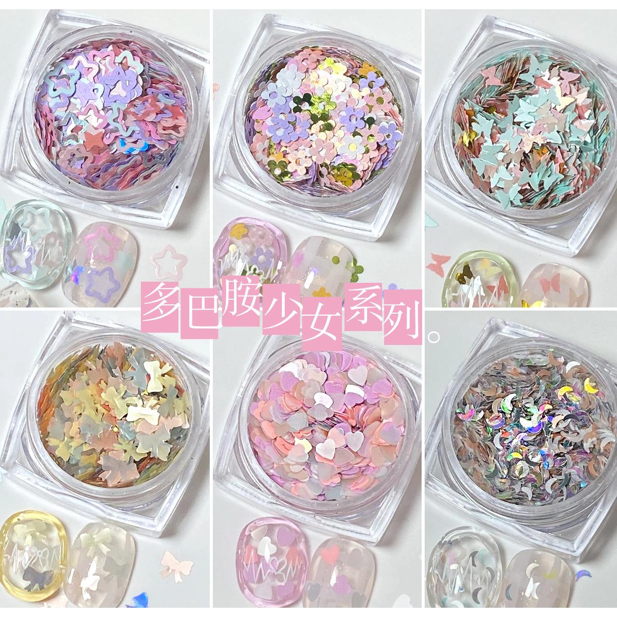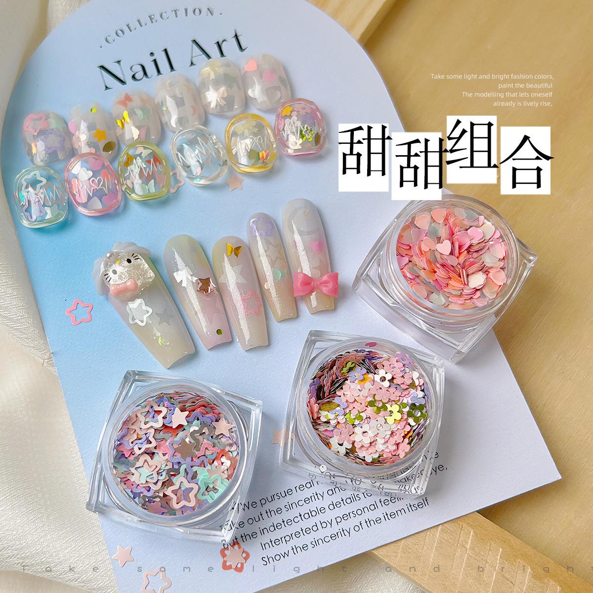 Arte de uñas dopamina hueco estrella de cinco puntas lentejuelas dulce crit rosa amor pétalos color mezclado parche de lazo