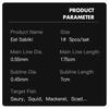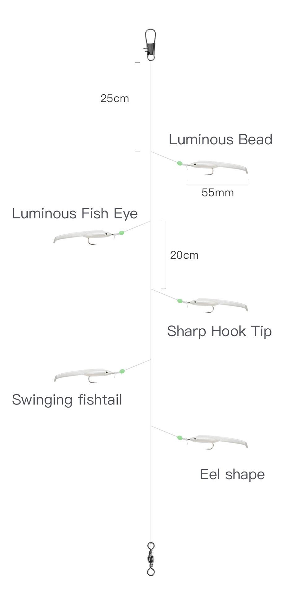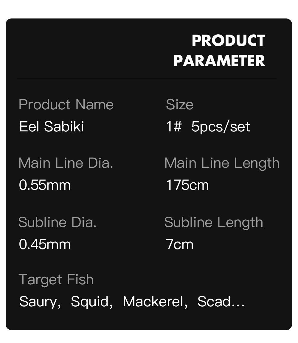 Línea principal: longitud total de unos 25 cm, diámetro de línea 0.55 mm